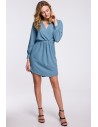Stylowa sukienka welurowa z kopertową górą - granatowa