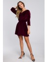 Stylowa sukienka welurowa z kopertową górą - bordowa