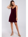Trapezowa sukienka z weluru - bordowa