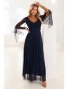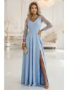 Trapezowa sukienka mini z długimi rękawami - chabrowa