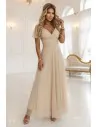 Sukienka połyskująca maxi z dekoltem V - beżowa