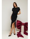 Elegancka sukienka midi z rozcięciem na nogę - czarna