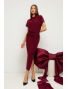 Elegancka sukienka midi z rozcięciem na nogę - bordowa