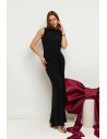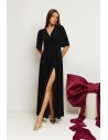 Sukienka maxi z rozcięciem na przodzie - czarna
