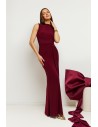 Dopasowana sukienka wieczorowa maxi - bordowa