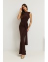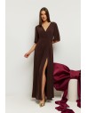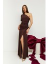 Sukienka wieczorowa z wysokim rozcięciem na nogę - brązowa