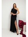 Sukienka wieczorowa z wysokim rozcięciem na nogę - czarna