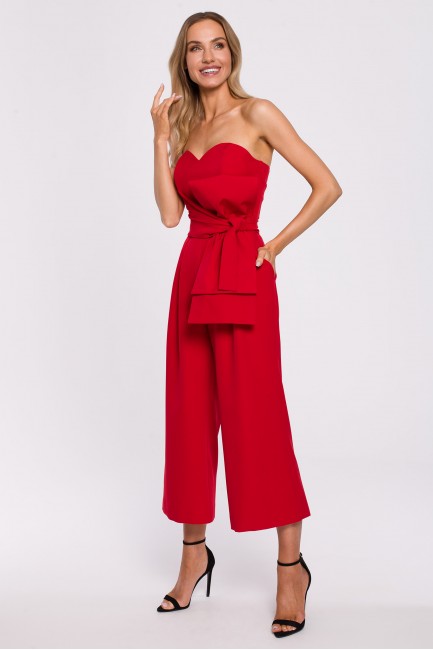 Elegancka stylizacja z czerwonym kombinezonem Czerwony kombinezon doskonale komponuje się z klasycznymi, eleganckimi dodatkami. W połączeniu z delikatną biżuterią, klasycznymi szpilkami i kopertówką stworzymy idealną stylizację na komunię, która będzie pełna szyku i klasy. Kombinezon z prostym krojem, podkreślający sylwetkę, jest świetnym wyborem na formalne okazje, gdyż łączy elegancję z nowoczesnością.