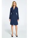 Trapezowa sukienka mini z długimi rękawami - chabrowa