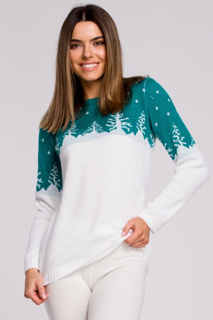 Świąteczny sweter z motywem choinek - szmaragdowy