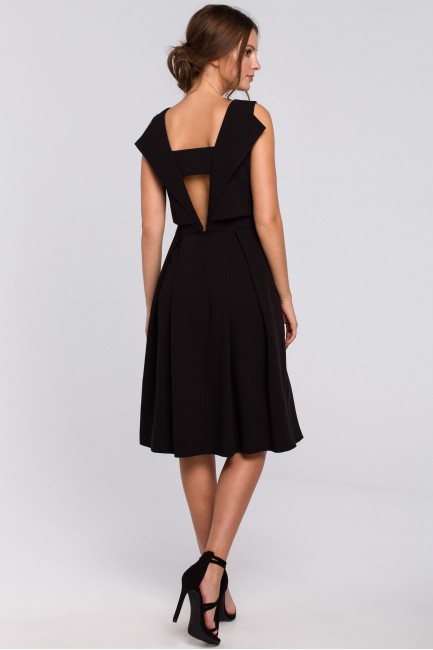 Rozkloszowana sukienka ze skrzydełkami - czarna