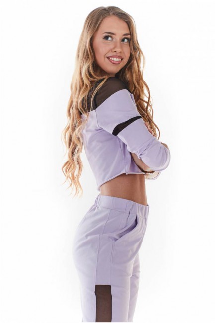 Krótka bluzka z dodatkiem czarnej siatki - fioletowa