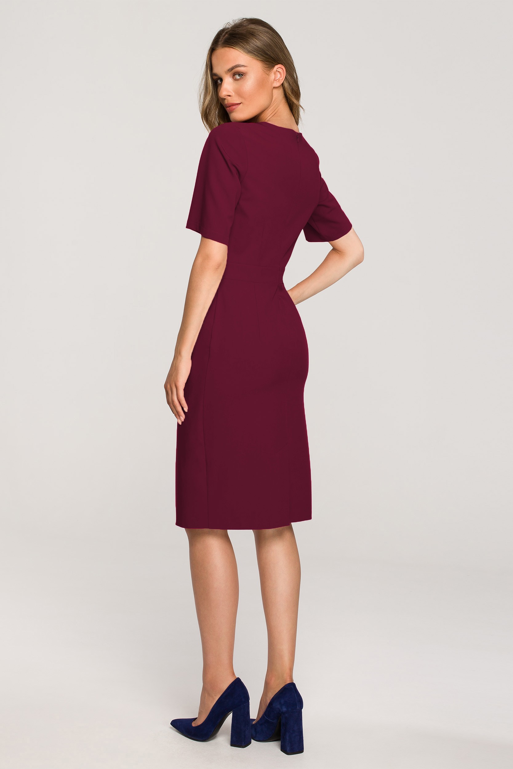 CM6915 Sukienka ołówkowa z krótkim rękawem - bordowa