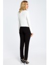 Elegancki, nietuzinkowy, krótki damski żakiet – narzutka z długimi rękawami i asymetrycznym przodem. Gładki, niezapinany, z podłużnymi przeszyciami i na stójce. Z przodu, na wysokości bioder imitacje kieszeni. Rękawy proste, zakończone rozcięciami można wywinąć lub podciągać. Tył gładki, krótki, z podłużnymi przeszyciami. Żakiet w całości na podszewce. Najlepszej jakości materiał i staranne wykonanie gwarantują zadowolenie. Materiał jest lekko rozciągliwy. Kolor nie spiera się, żakiet nie rozchodzi się na szwach. Wyprodukowano przez MOE w Polsce.