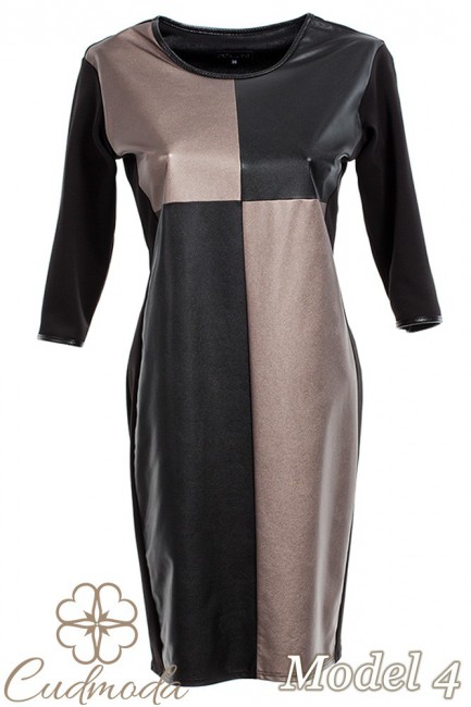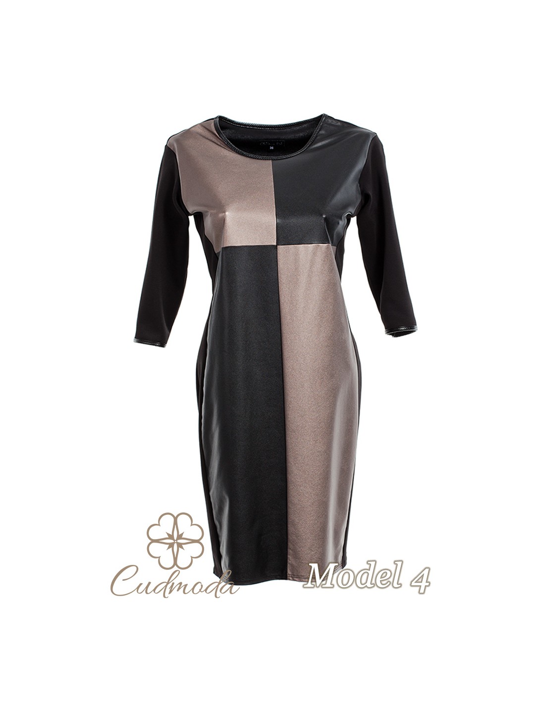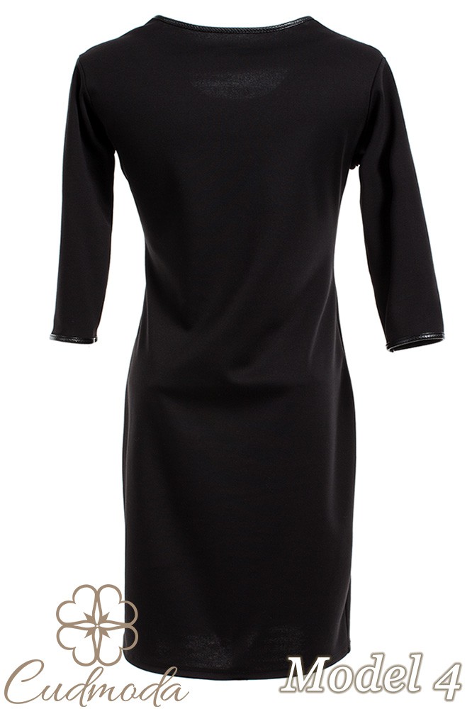 Trapezowa sukienka mini z długimi rękawami - chabrowa