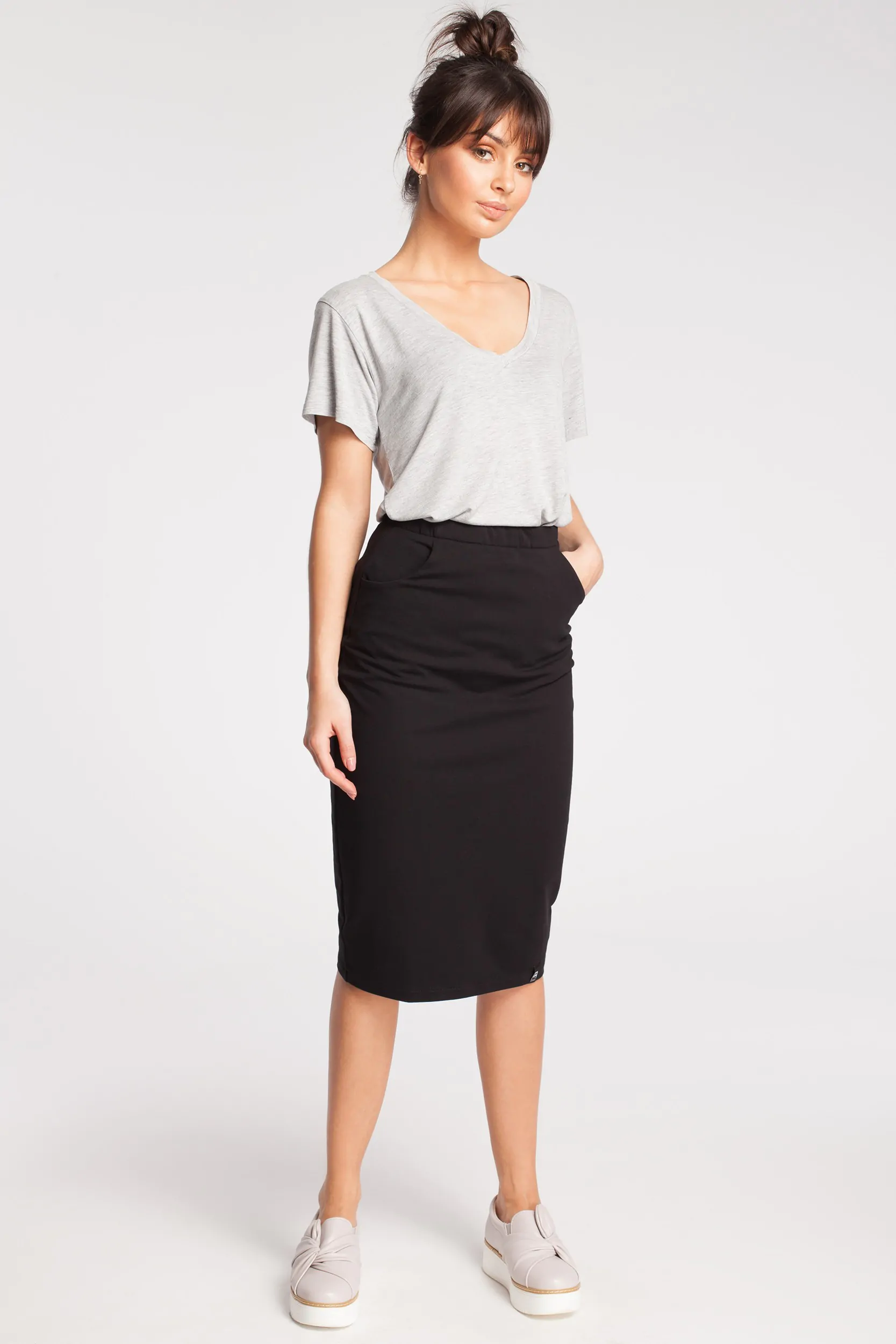 Świetnie prezentująca się, gładka spódnica midi to coś, czego potrzebujesz w swojej szafie. Wykonana z wysokiej jakości materiału, który zapewnia niezwykły komfort noszenia. Posiada ściągacz w pasie oraz kieszenie po bokach. Element stylizacji, który można zakładać według uznania i łączyć z dużą ilością rzeczy. Wyprodukowano dla Cudmoda w Polsce.