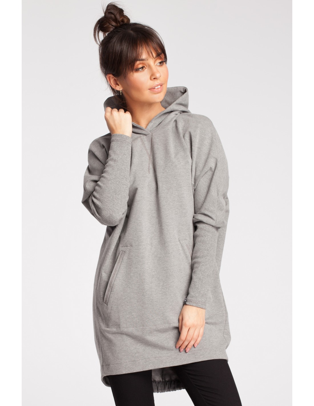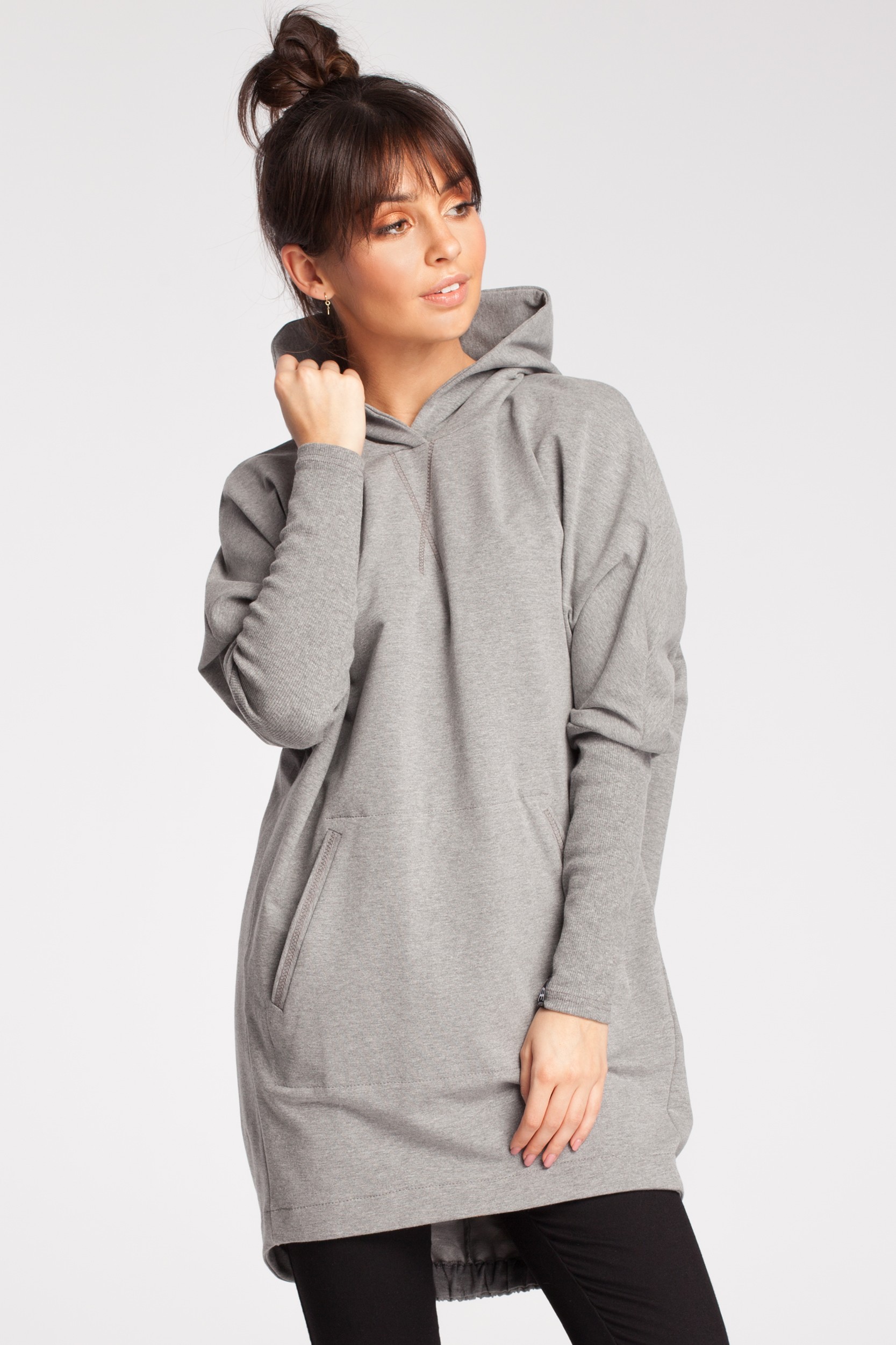 Dresowa tunika to ten element garderoby, po który sięgamy bardzo chętnie i nic w tym dziwnego, bo jest wygodny, a do tego uniwersalny - pasuje dosłownie do każdej sylwetki. W razie potrzeby maskuje ewentualne mankamenty figury. Świetnie sprawdza się na co dzień - podczas zakupów, spacerów czy wyjazdów. Szara bawełniana tunika z kapturem posiada dużą kieszeń typu kangurka na przodzie, a jej tył jest zmarszczony, co sprawia, że idealnie układa się na sylwetce. Tunika oczywiście w komplecie z legginsami zawsze prezentuje się wyśmienicie. Jednak z jeansami współgra równie dobrze i choć to połączenie jest dość popularne, jednocześnie jest bardzo stylowe. Tunika wyprodukowana w Polsce.