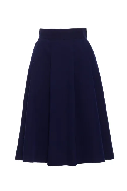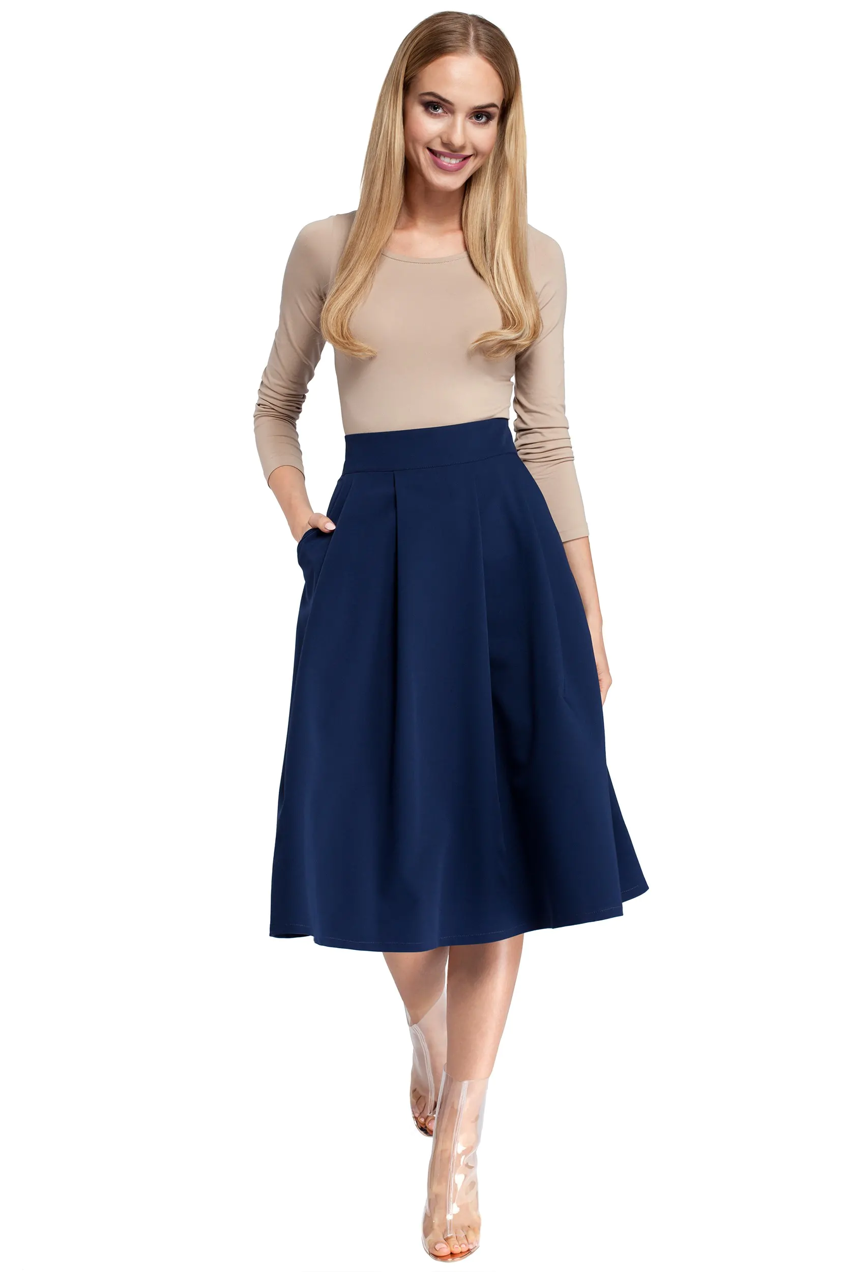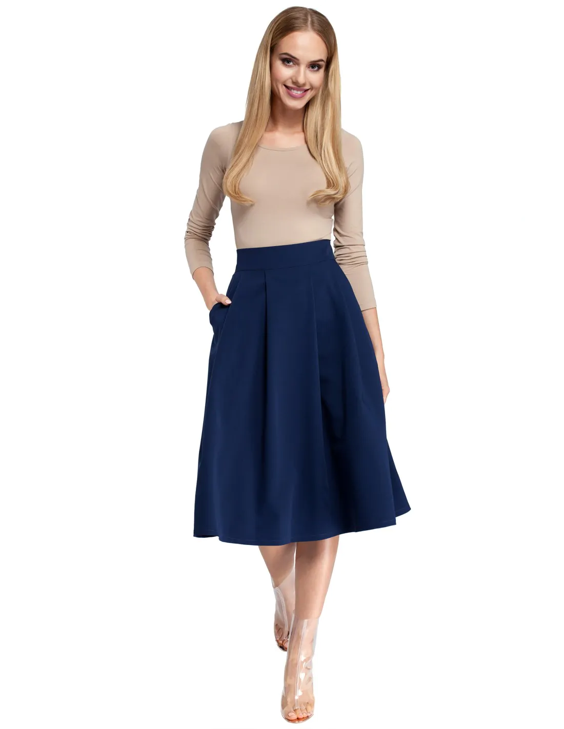 CM2926 Spódnica midi z zakładkami i kieszeniami - granatowa