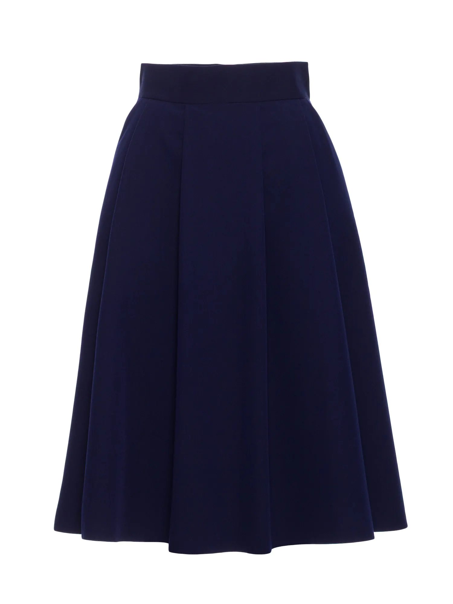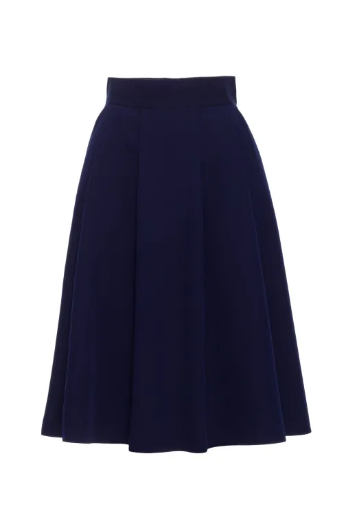 Spódnica midi z zakładkami i kieszeniami - granatowa