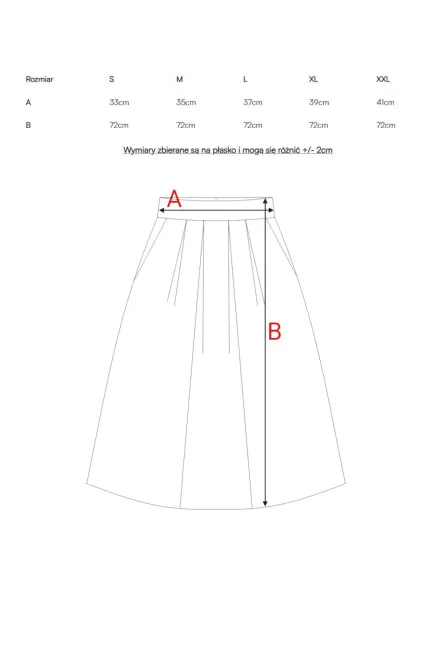 Urok rozkloszowanych spódnic nie mija wraz z kończącym się trendem. One nigdy nie wychodzą z mody i mają masę zalet! Właśnie dlatego warto zaopatrzyć się w proponowaną przez nas granatową spódnicę midi z zakładkami i kieszeniami. Rozkloszowana spódnica wygląda atrakcyjnie na każdej sylwetce, a jej pasek stylowo podkreśla zgrabną talię. Szwy boczne wzbogaciliśmy o kieszenie, co z pewnością docenią zwolenniczki praktycznych rozwiązań. Spódnica o długości midi doskonale nadaje się na co dzień, wyjątkowe okazje, jak i do pracy. Sylwetka zachowa odpowiednie proporcje, jak połączysz ją z butami na obcasie. Wyprodukowana w Polsce.