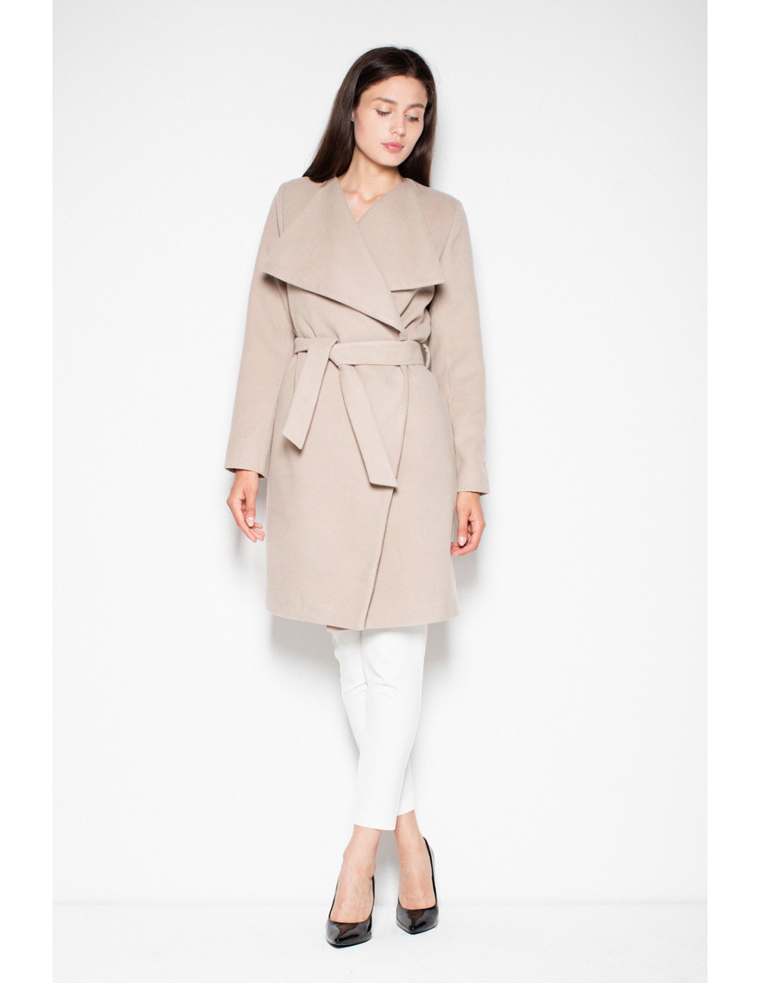 Klasyczny płaszcz damski należący do propozycji eleganckich. Model z rozłożystym kołnierzem, który prezentuje się imponująco. Przewiązany w pasie, z kieszeniami po bokach. Opcja dla kobiet, które poszukują eleganckiego okrycia wierzchniego, w którym poczują się wygodnie i będą wyglądać stylowo. Wyprodukowano przez firmę Venaton w Polsce.