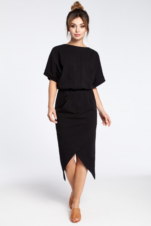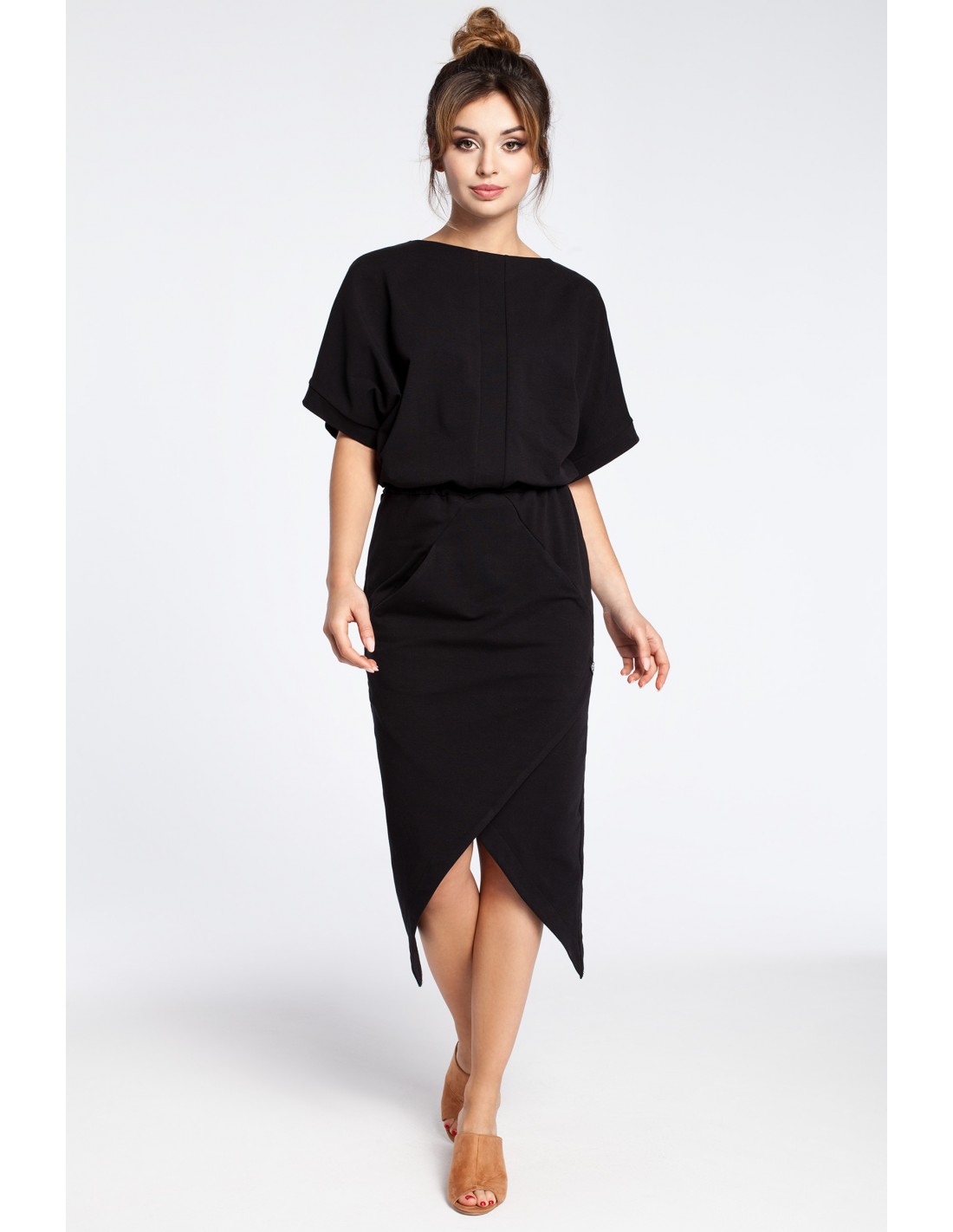 CM3026 Nowoczesna sukienka z zakładką - czarna