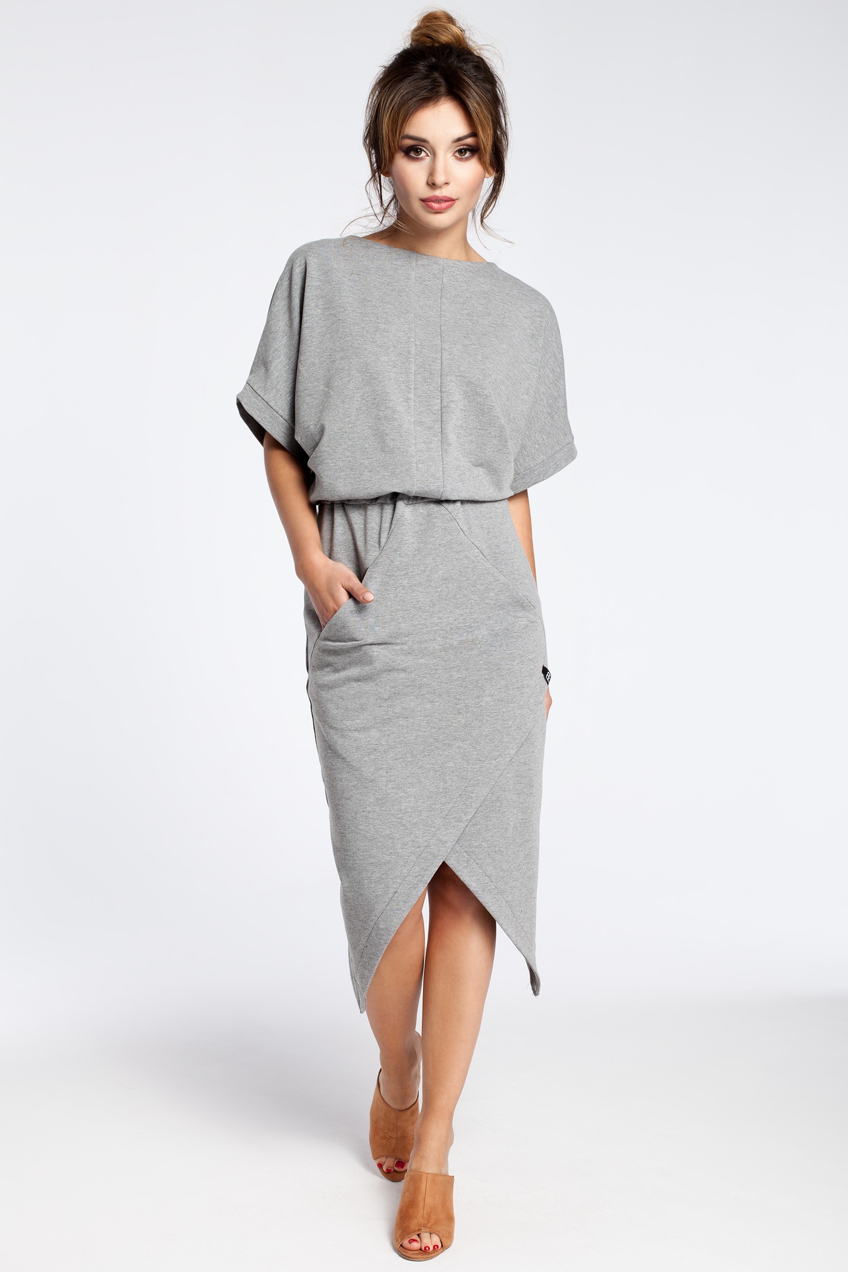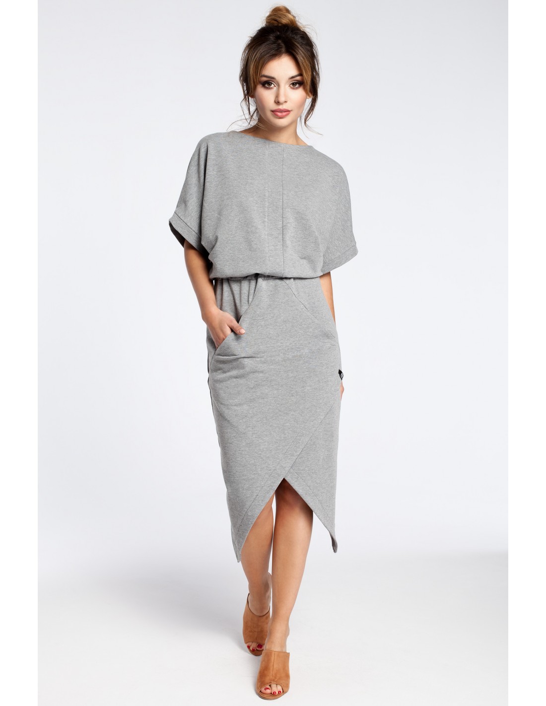 CM3026 Nowoczesna sukienka z zakładką - szara
