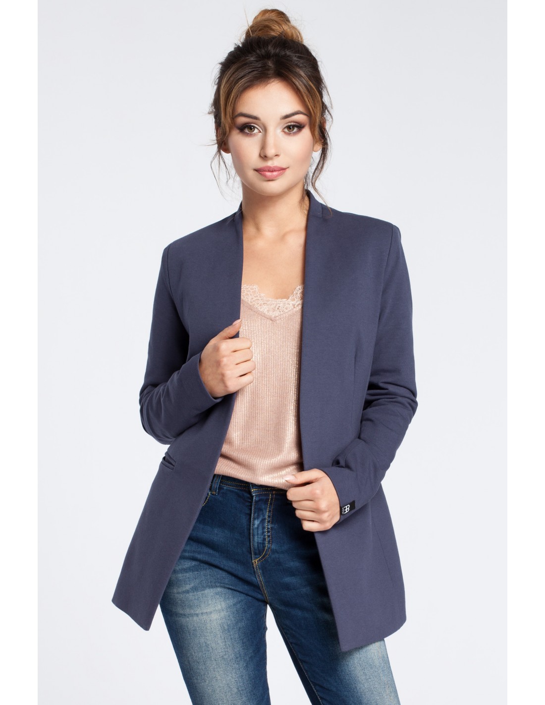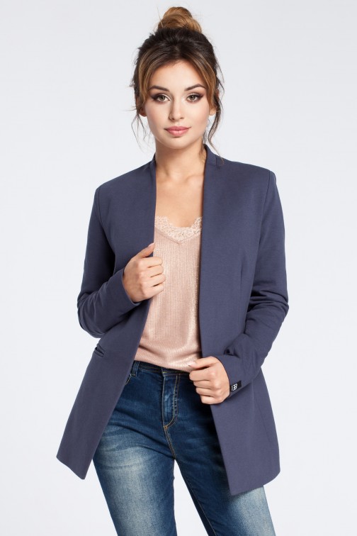 CM3027 Dzianinowy niezapinany żakiet - niebieski