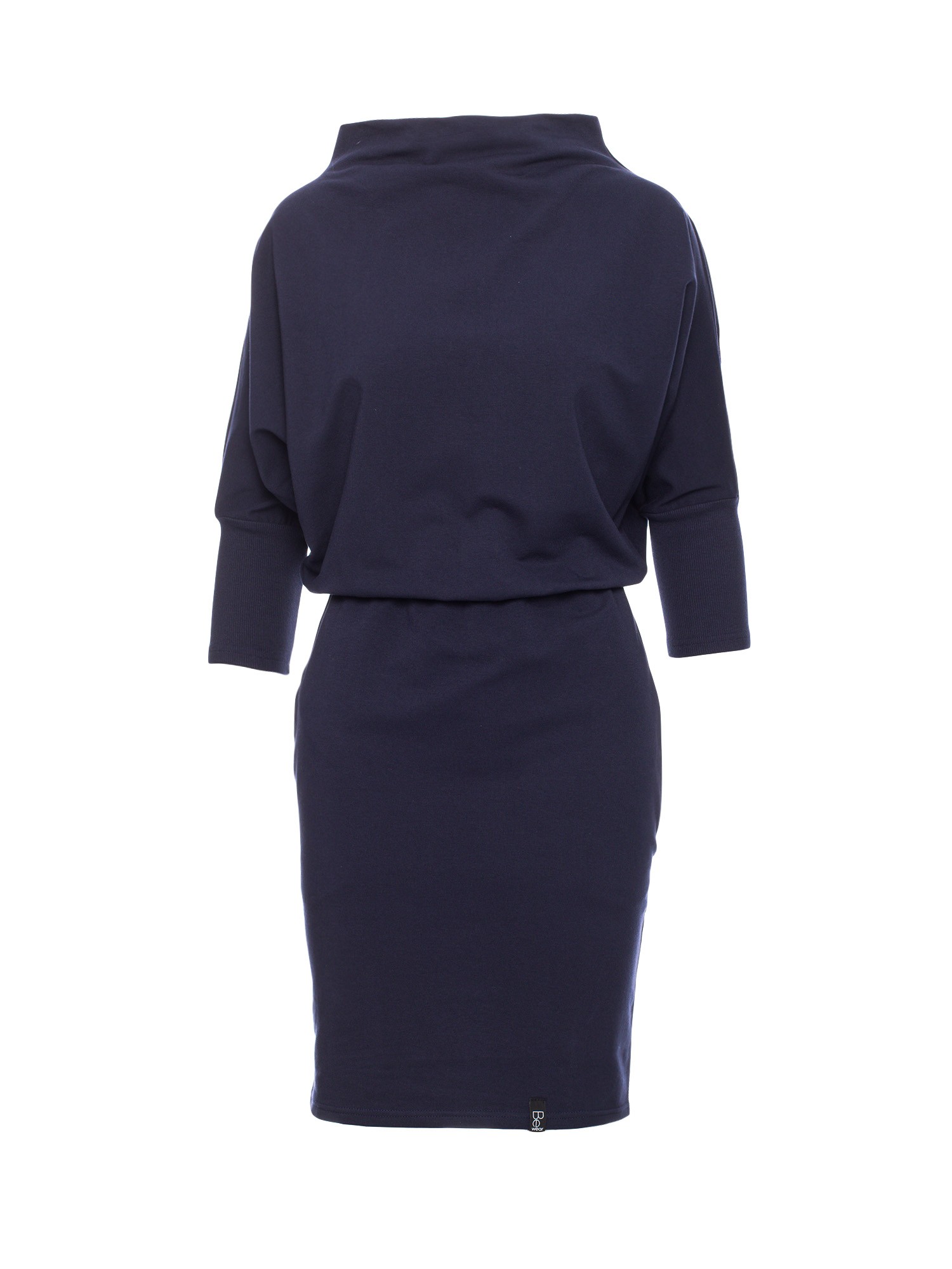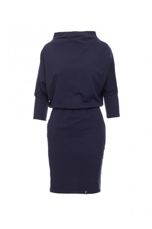 Połączenie kroju kimono z dzianiną bawełnianą to maksimum wygody i komfortu, jaką możesz osiągnąć! Luźna góra doskonale współgra z ołówkowym dołem zapewniając idealne proporcje sylwetki. Rękawy o kroju kimono zostały zakończone wąskimi ściągaczami, a przy dekolcie znajduje się wysoki, luźno opadający kołnierz. Część spódnicowa jest dopasowana i ma kieszenie w szwach bocznych, oddzielona jest od góry gumką znajdującą się w talii. Granatowa stylowa sukienka mini z rękawami kimono odkrywa nogi i pozwala wyeksponować ulubione buty - w tym przypadku klapki na obcasie bądź płaskiej podeszwie, trampki czy sandałki będą odpowiednie. Sukienka wyprodukowana w Polsce.