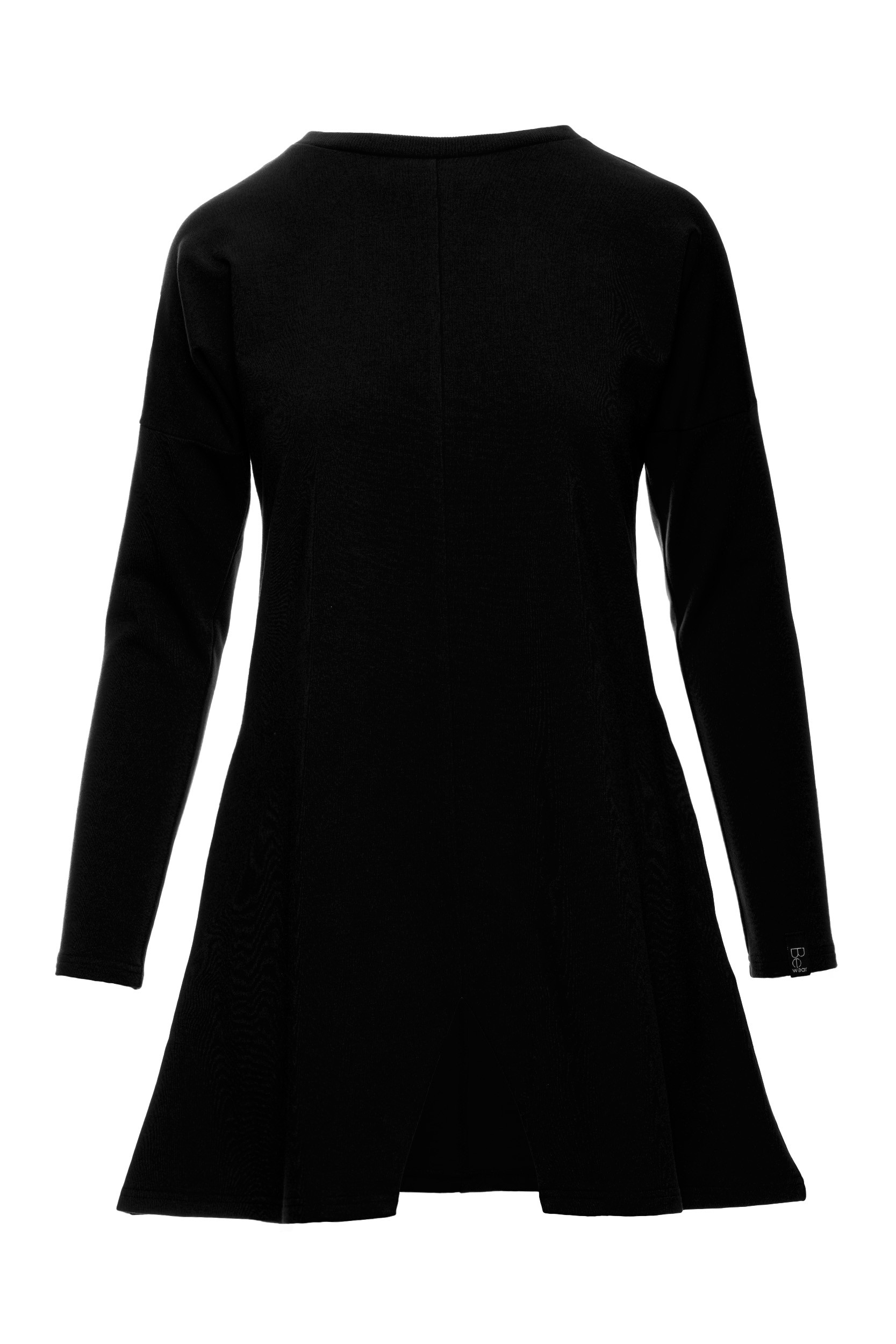 Uwielbiasz tuniki i marzy Ci się nowa, która nie będzie kopią poprzedniej? Ten model z pewnością Cię zaskoczy swoim niebanalnym krojem! Tunika o trapezowym kroju wycięciem u dołu i kieszeniami po bokach. Taki fason pasuje na każdą sylwetkę, bez względu na rodzaj figury. Uszyta jest z miękkiej dzianiny dresowej, więc komfort podczas noszenia masz gwarantowany! Czarna tunika z wycięciem z dołu będzie idealna na spacer, po domu, do szkoły, a także do pracy, w której nie obowiązuje “dress code”. Z czym ją nosić? Legginsy lub jeansy slim będą trafnym wyborem. Do tego dorzuć sneakersy, a chłodniejsza porą botki czy kozaki i ramoneskę lub płaszcz typu trencz. Stylizacja gotowa! Wyprodukowaliśmy ją w Polsce.