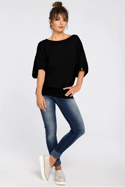 CM3186 Bluza oversize z rękawami kimono - czarna