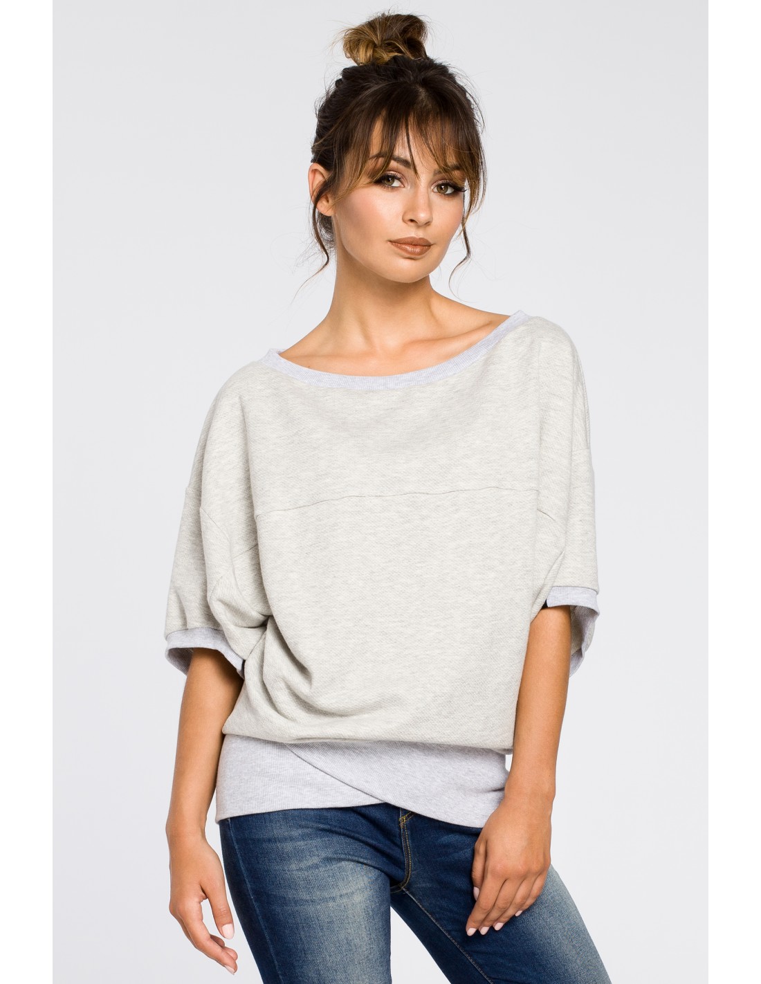 CM3186 Bluza oversize z rękawami kimono - popielata