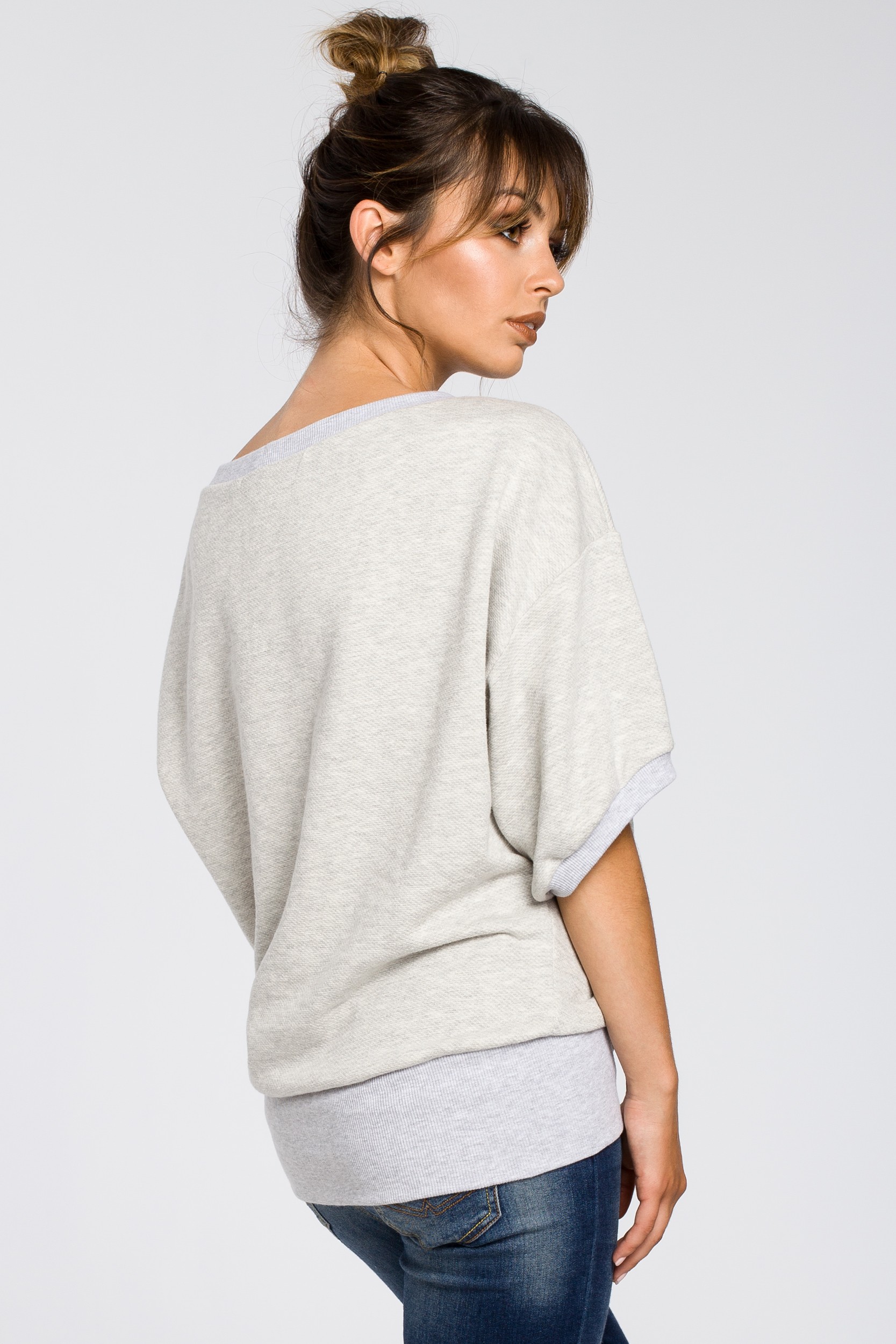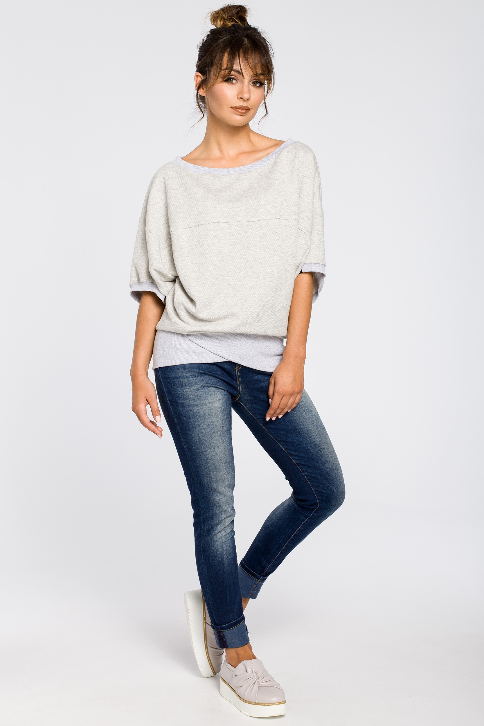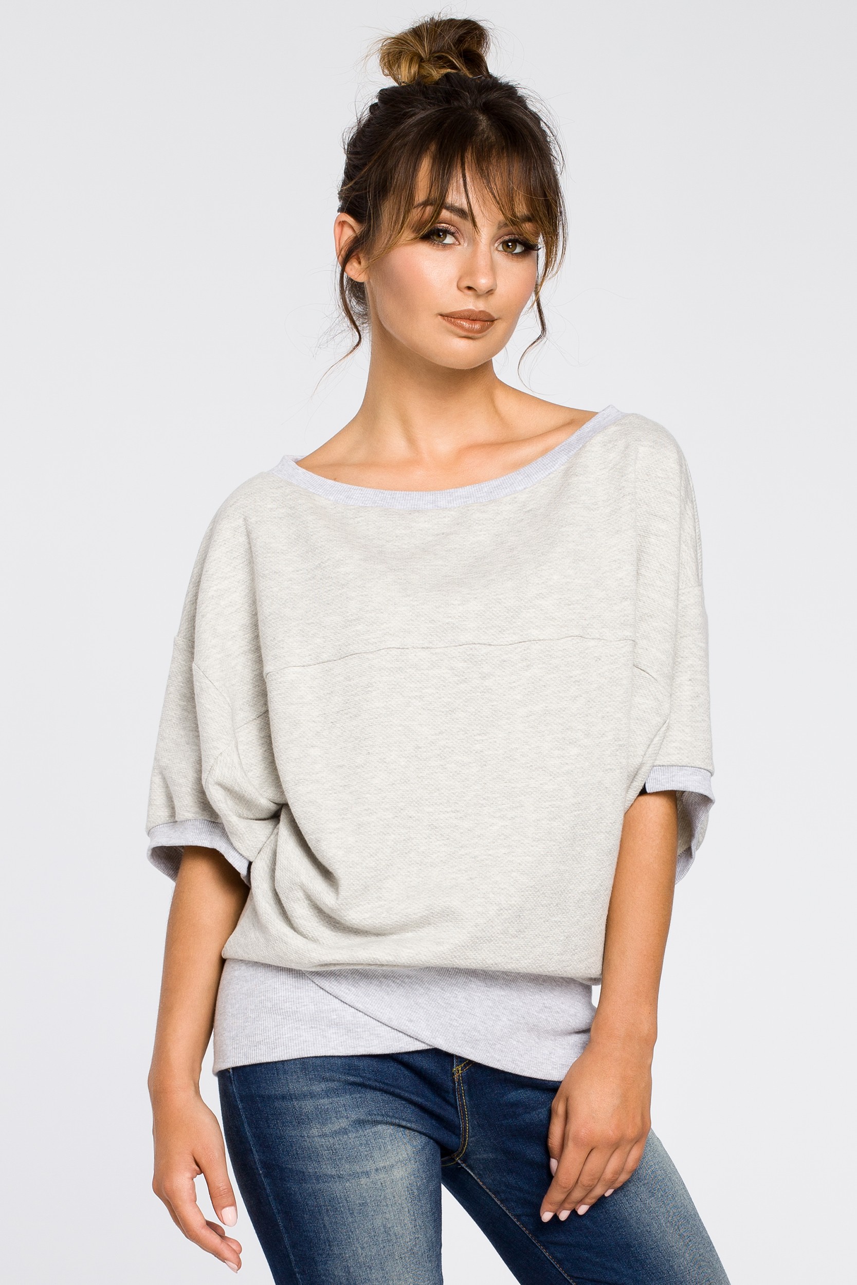Bluza oversize z rękawami kimono - popielata