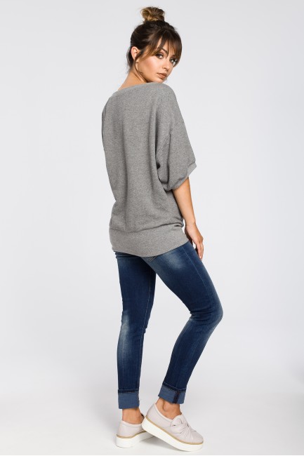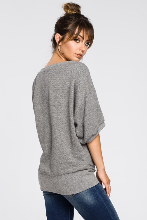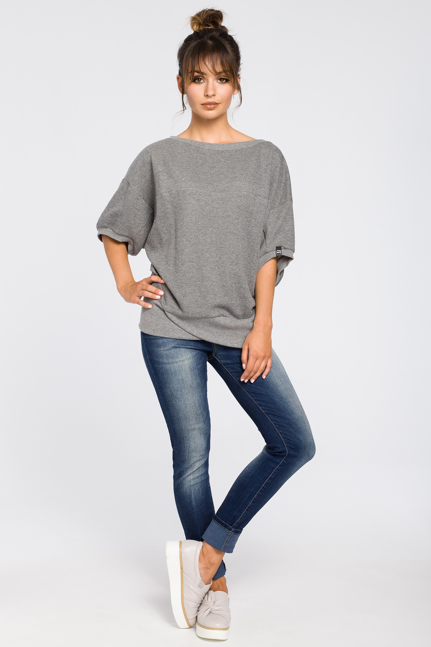Oversizowa bluza z miękkiej dzianiny o prążkowanym splocie z ciekawym akcentem - zakładanym dołem i wykończona ściągaczem Do jeansów, czy legginsów, to doskonały wybór na co dzień.