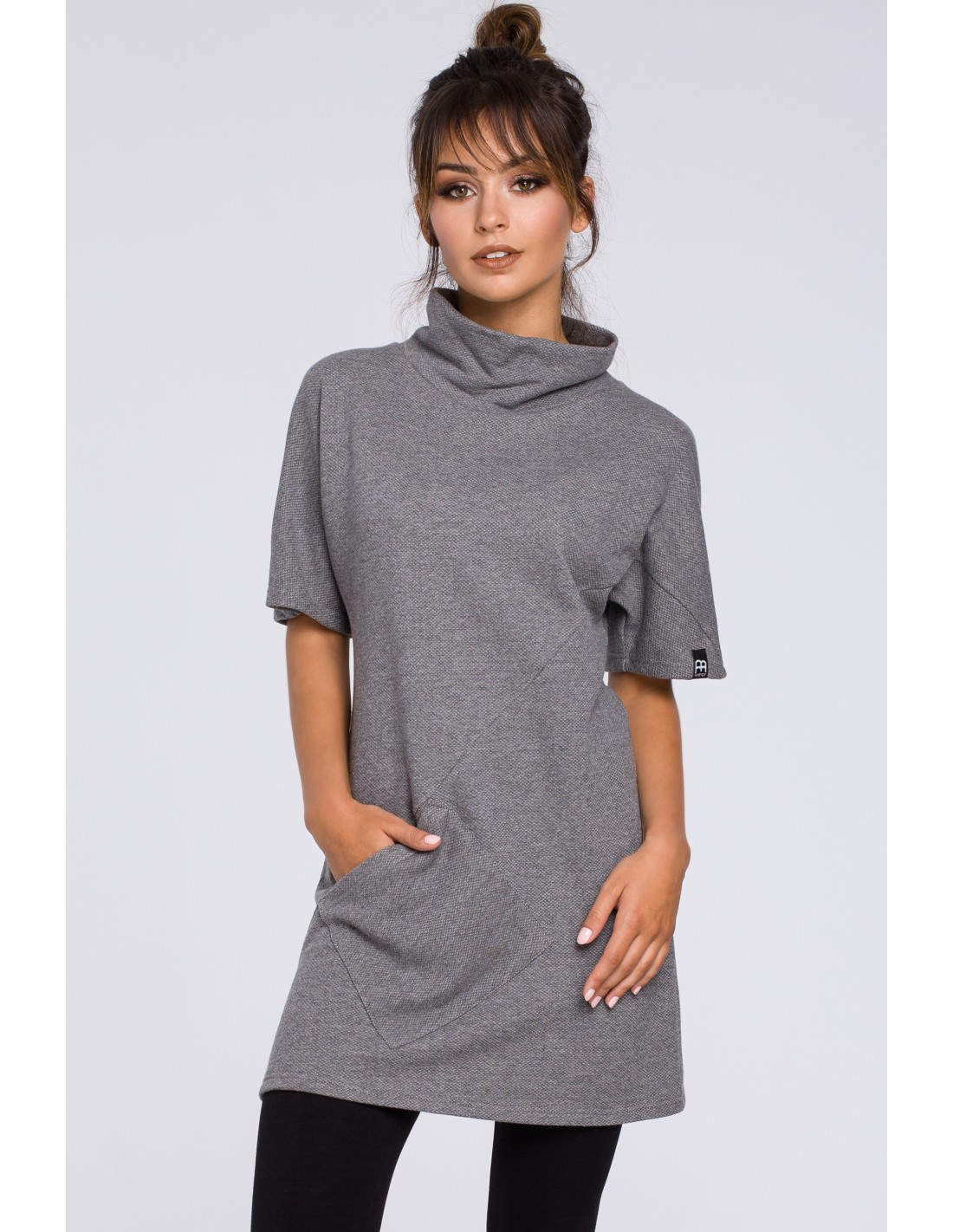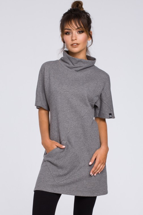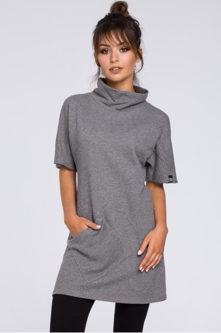 Prosta kobieca tunika z półgolfem - szara