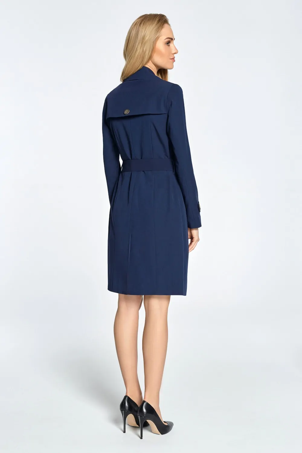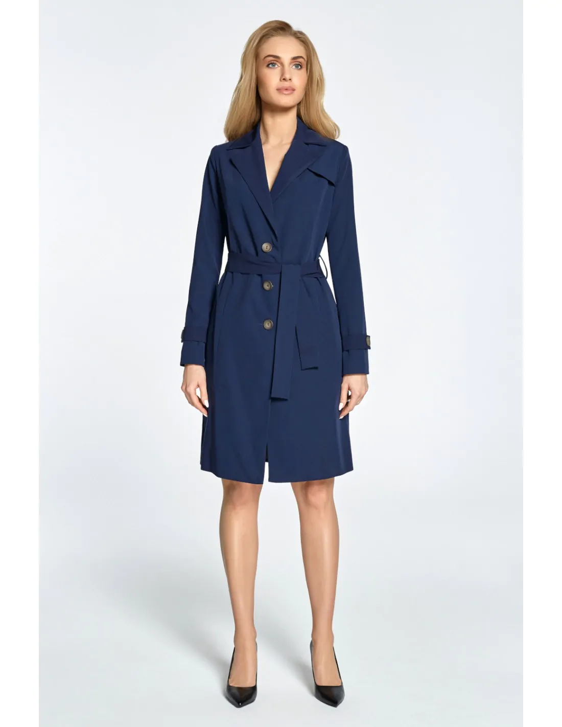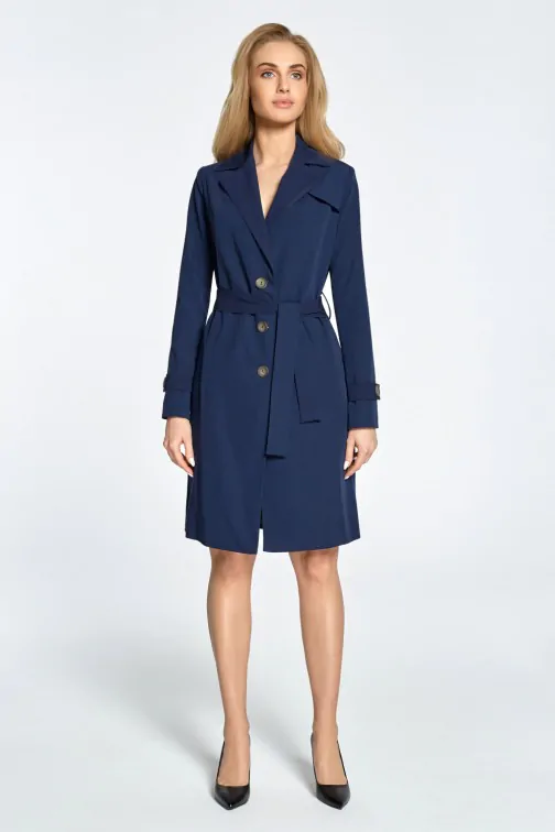 CM3453 Lekko taliowany płaszcz ze szlufkami - granatowy