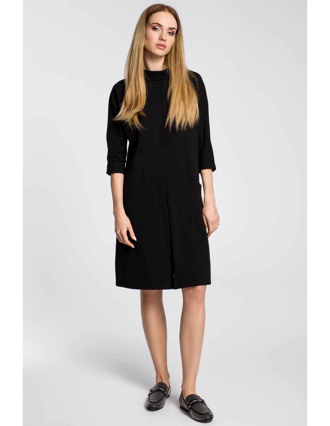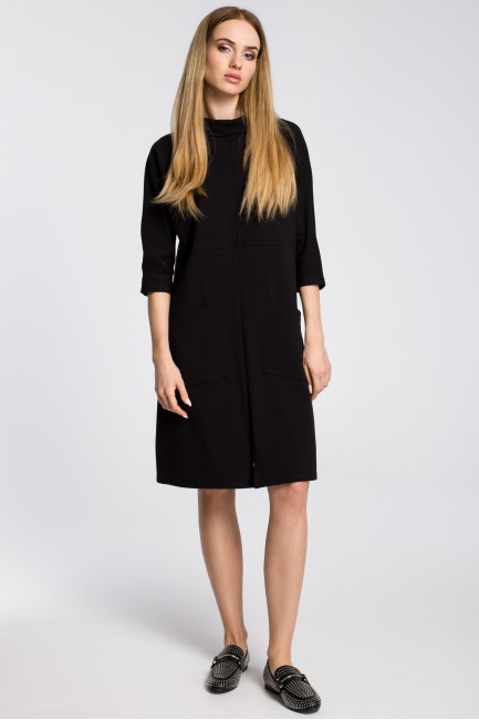 CM3581 Sukienka oversize z ukośnymi kieszeniami - czarna