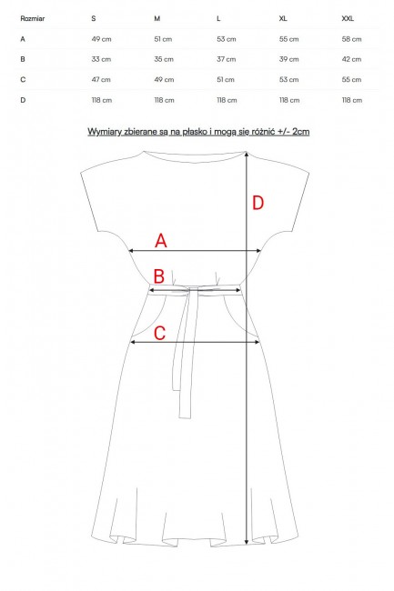 Ponadczasowy krój sukienki z rozkloszowanym dołem długości do kolan i lekko zbluzowana góra, a wszystko to połączone paskiem dla dopełnienia kobiecego wyglądu. Ta sukienka to absolutny „must have”. Wyprodukowano przez BE w Polsce.