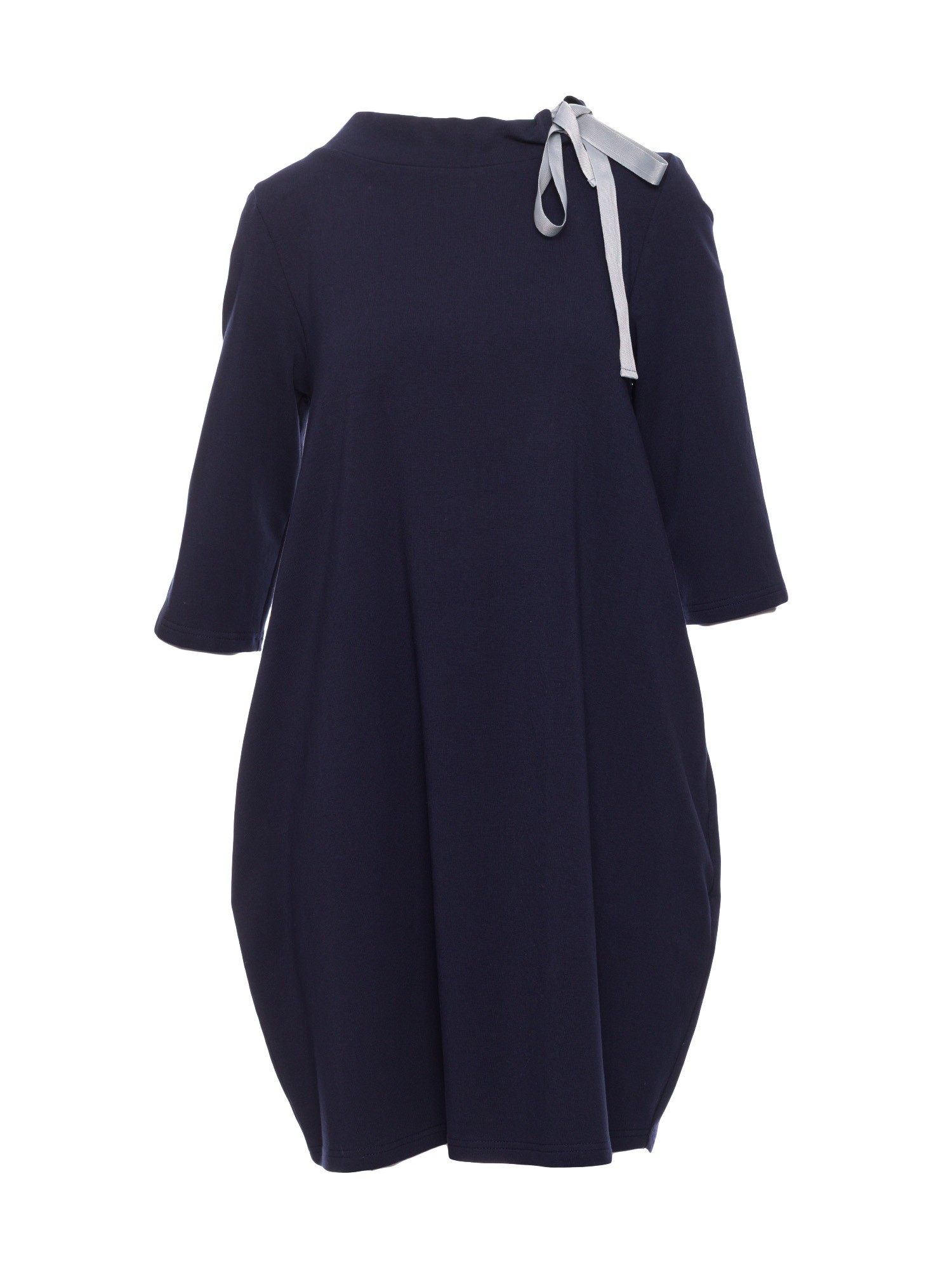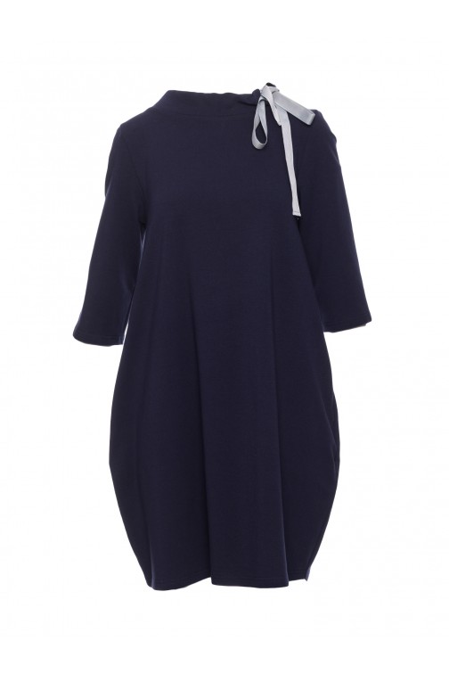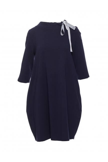 CM3607 Dresowa sukienka z wiązaniem pod szyją - granatowa