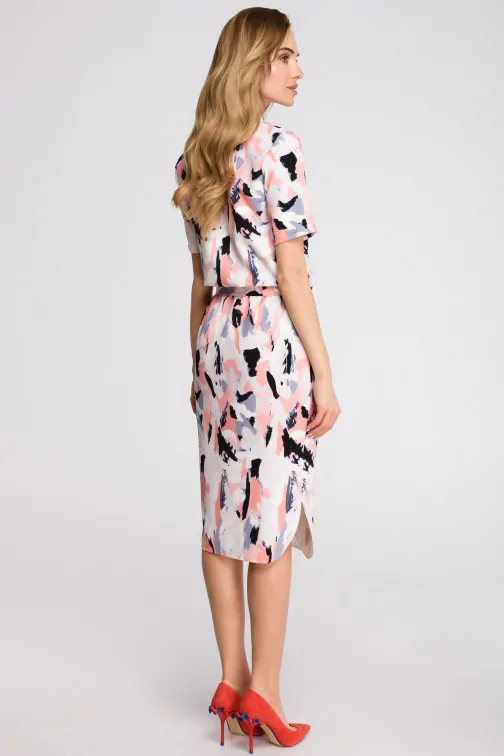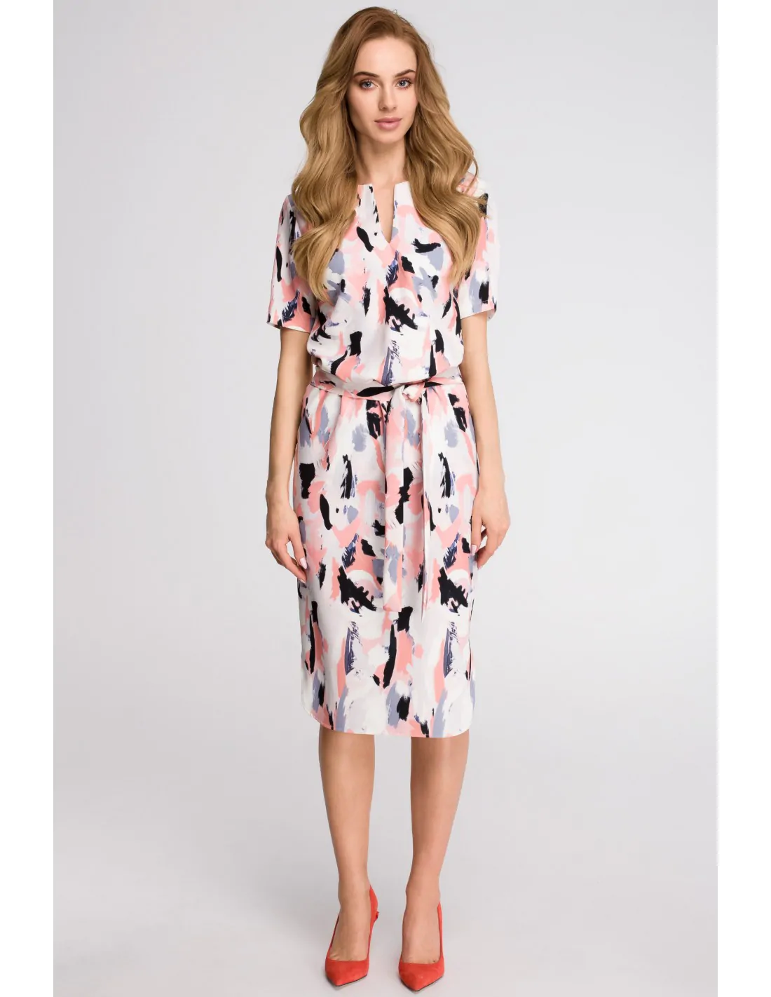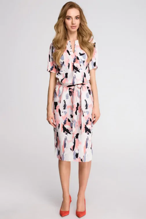 CM3630 Sukienka z paskiem i dołem na półokrągło - model 2