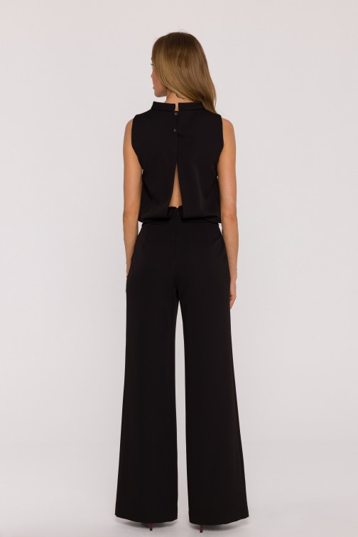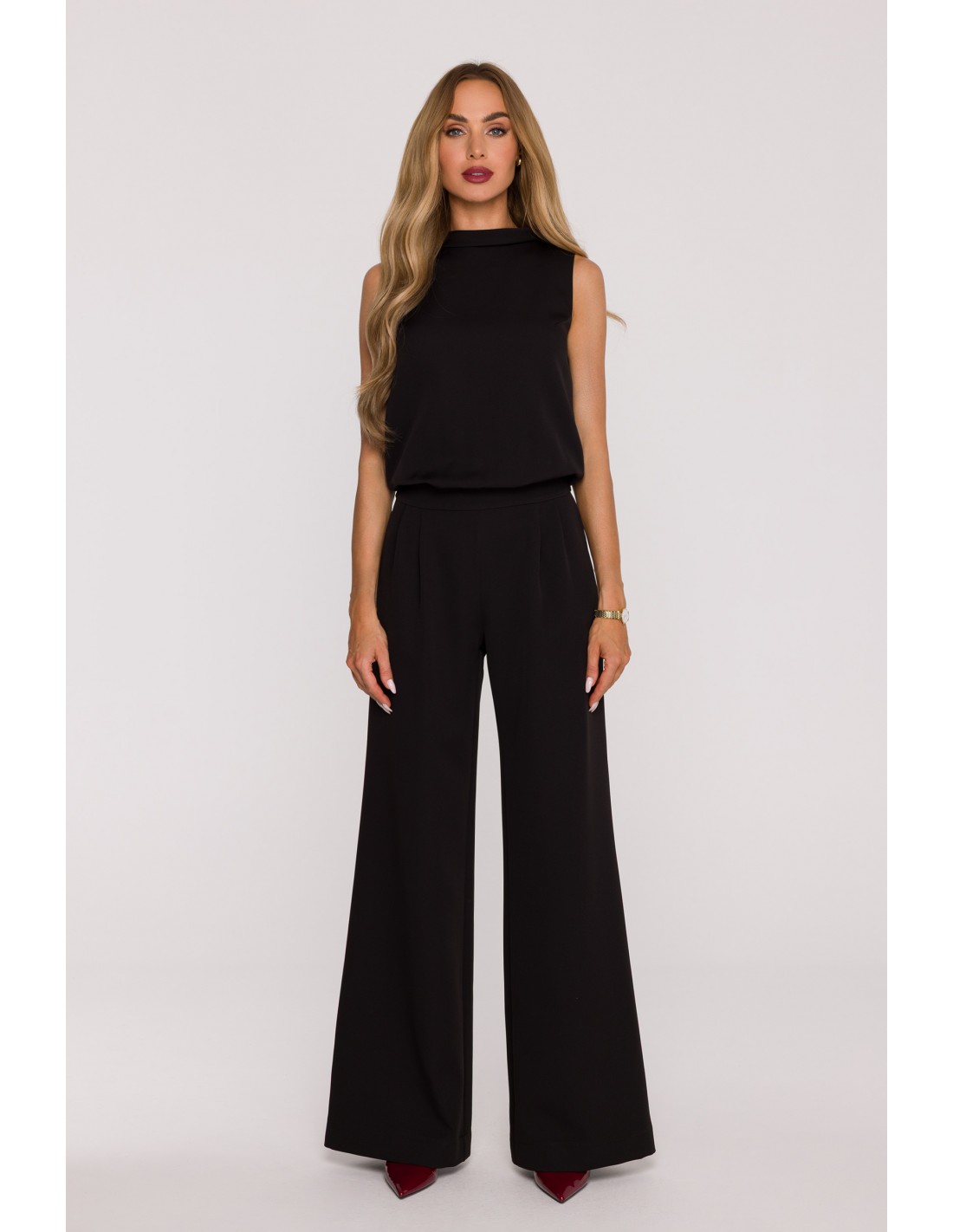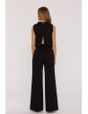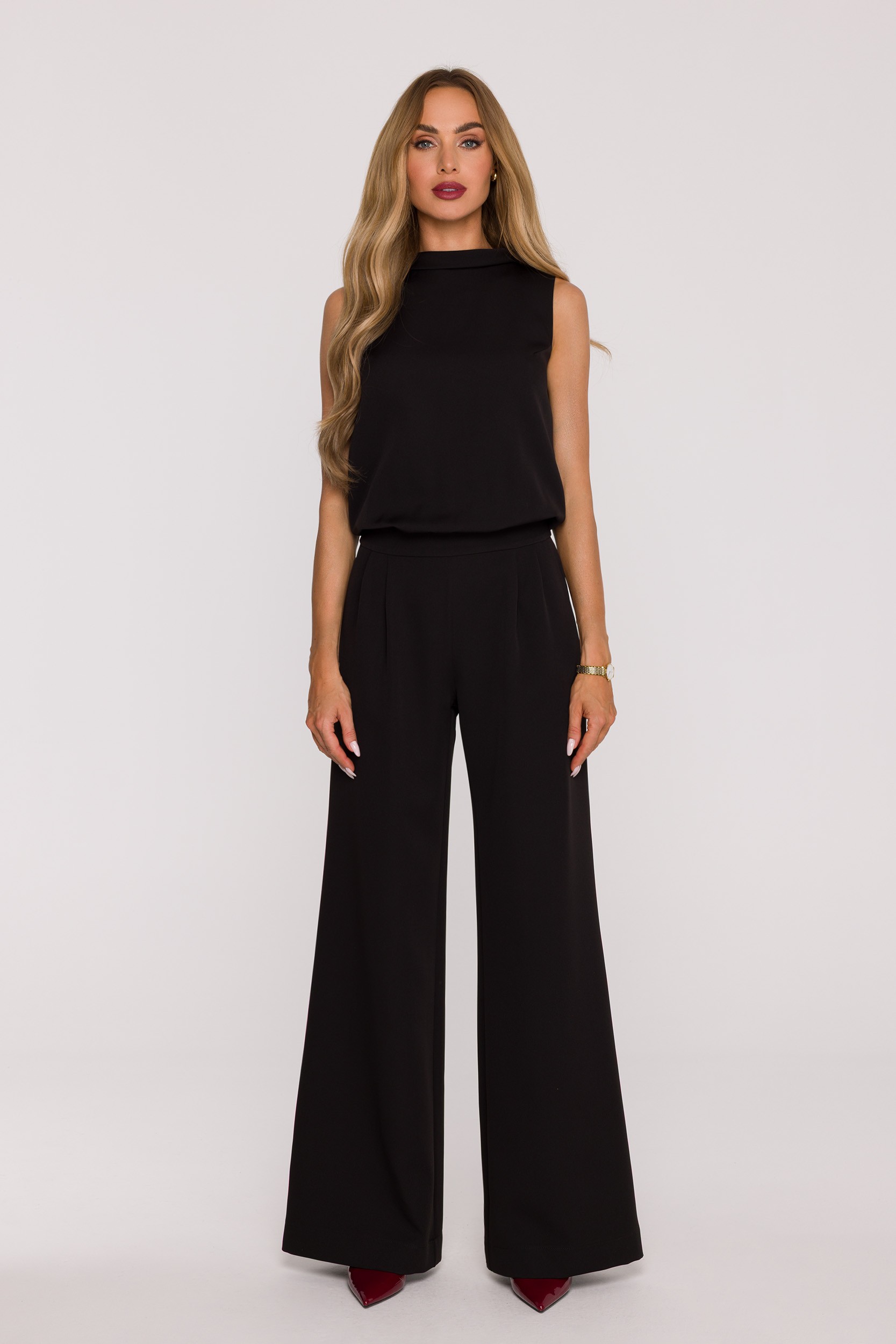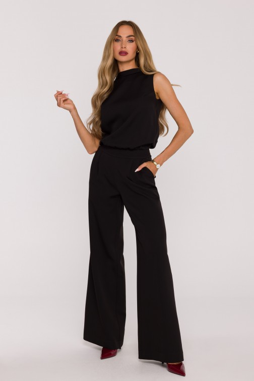 Czarny kombinezon z szerokimi nogawkami ma tyle zalet, że trudno przejść obok niego obojętnie! Długie i poszerzane ku dołowi nogawki, wysmuklenie w talii, odsłonięte ramiona - to wszystko, dzięki czemu podkreślisz walory swojej sylwetki, optycznie wydłużysz i wysmuklisz figurę, zmysłowo, a zarazem subtelnie odsłonisz ciało. To model o stricte wizytowym charakterze, więc idealnie sprawdzi się na oficjalnym spotkaniu, eleganckim przyjęciu czy imprezie w rodzinie. Zastanawiasz się, czy ten kombinezon wypada założyć na wesele? Odpowiedź brzmi - zdecydowanie tak! Łączy wygodę, jaką dają spodnie z elegancją, jakiej oczekujesz od wieczorowej kreacji. Dołącz sandałki na szpilce, biżuteryjne kolczyki, małą torebkę i kreacja w bardzo dobrym stylu gotowa! Kombinezon wyprodukowany w Polsce.