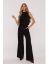 • Typ sylwetki: świetnie prezentuje się na sylwetkach typu klepsydra i prostokąt; zbluzowana góra i szerokie nogawki z zaszewkami w talii nadają elegancji.