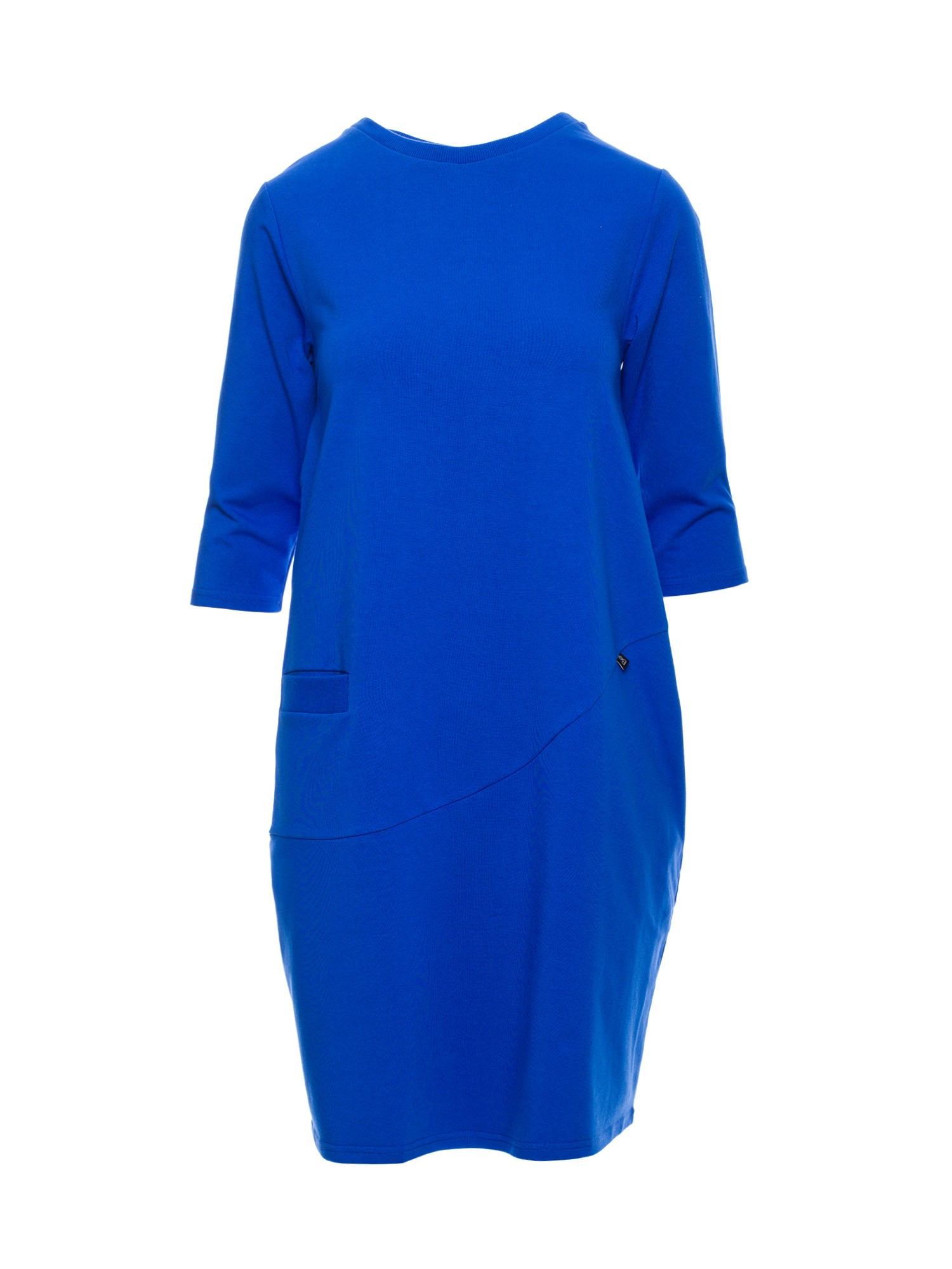 Kobieca sukienka bombka z kieszenią na boku z rękawem długości 3/4. Niedopasowany fason pozwoli Ci poczuć się w niej komfortowo podczas spaceru, pracy lub codziennych obowiązków. Wyprodukowano przez BE w Polsce.