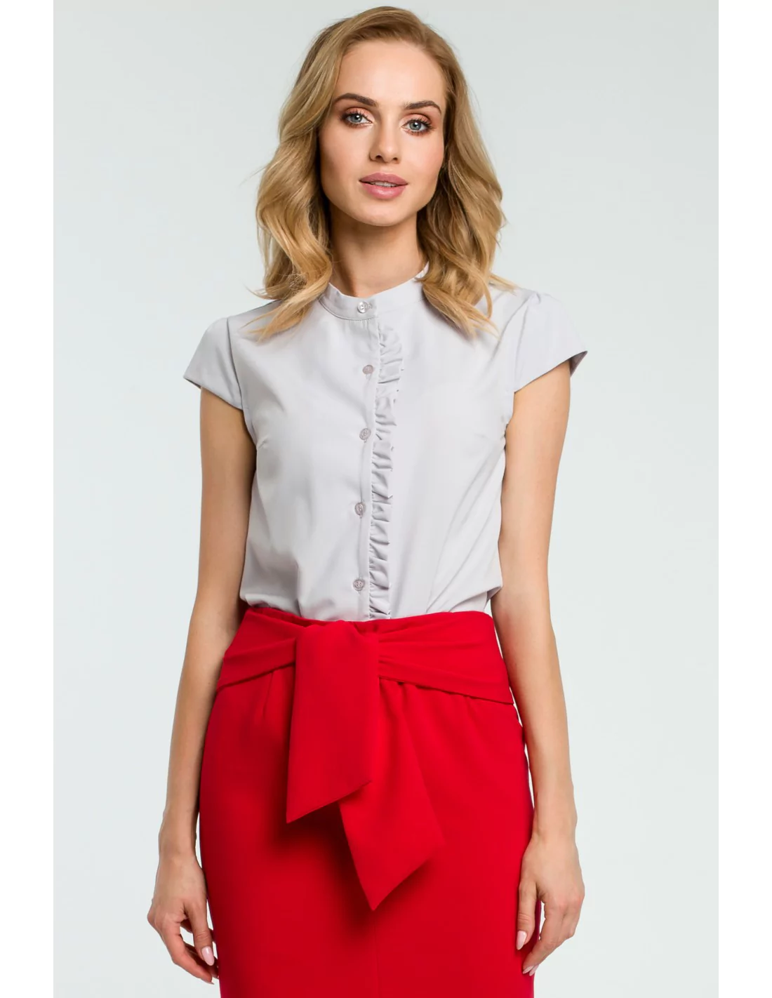 CM3814 Prosta elegancka bluzka z krótkim rękawem - szara