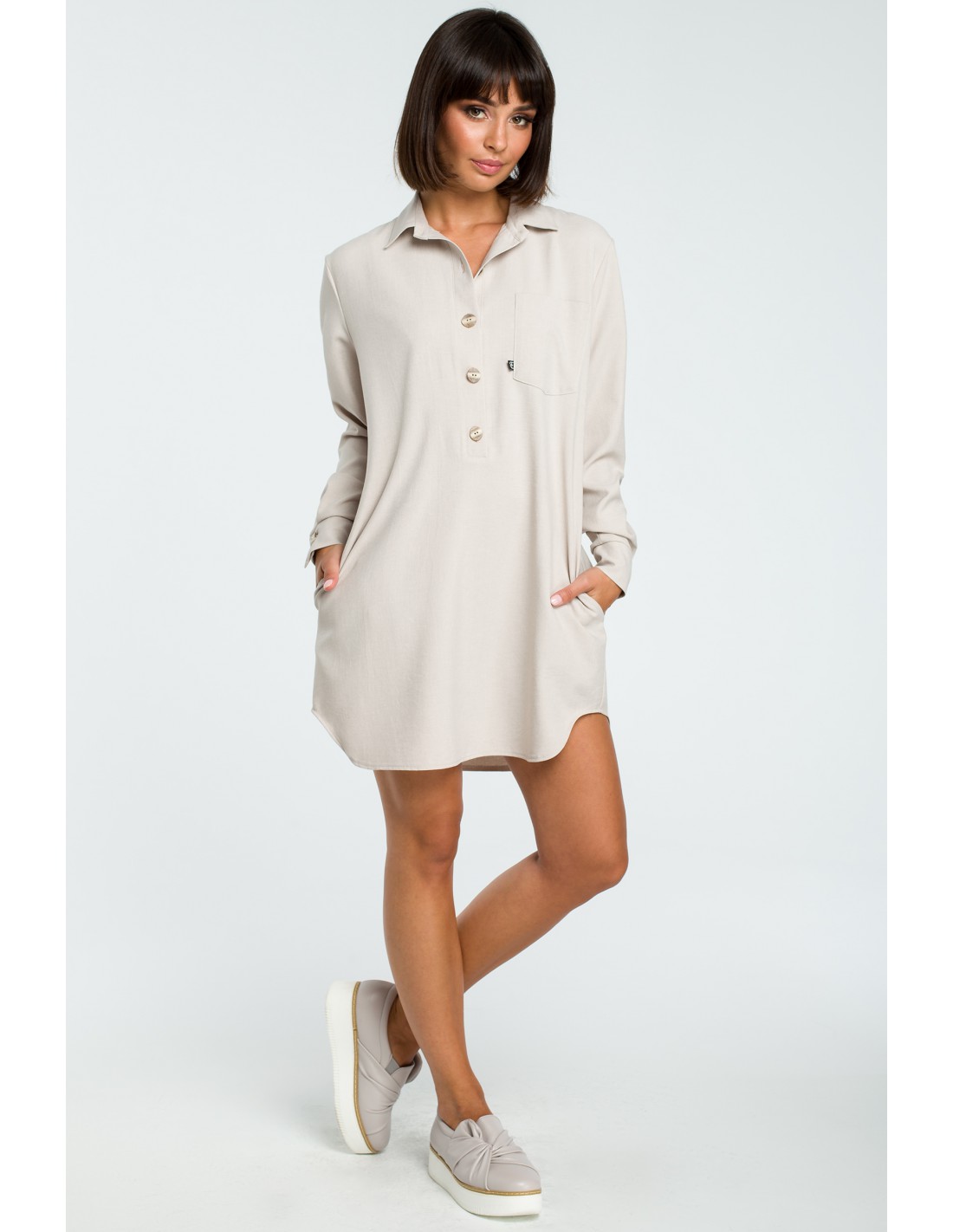 CM3815 Tunika koszulowa z kołnierzykiem - beżowa
