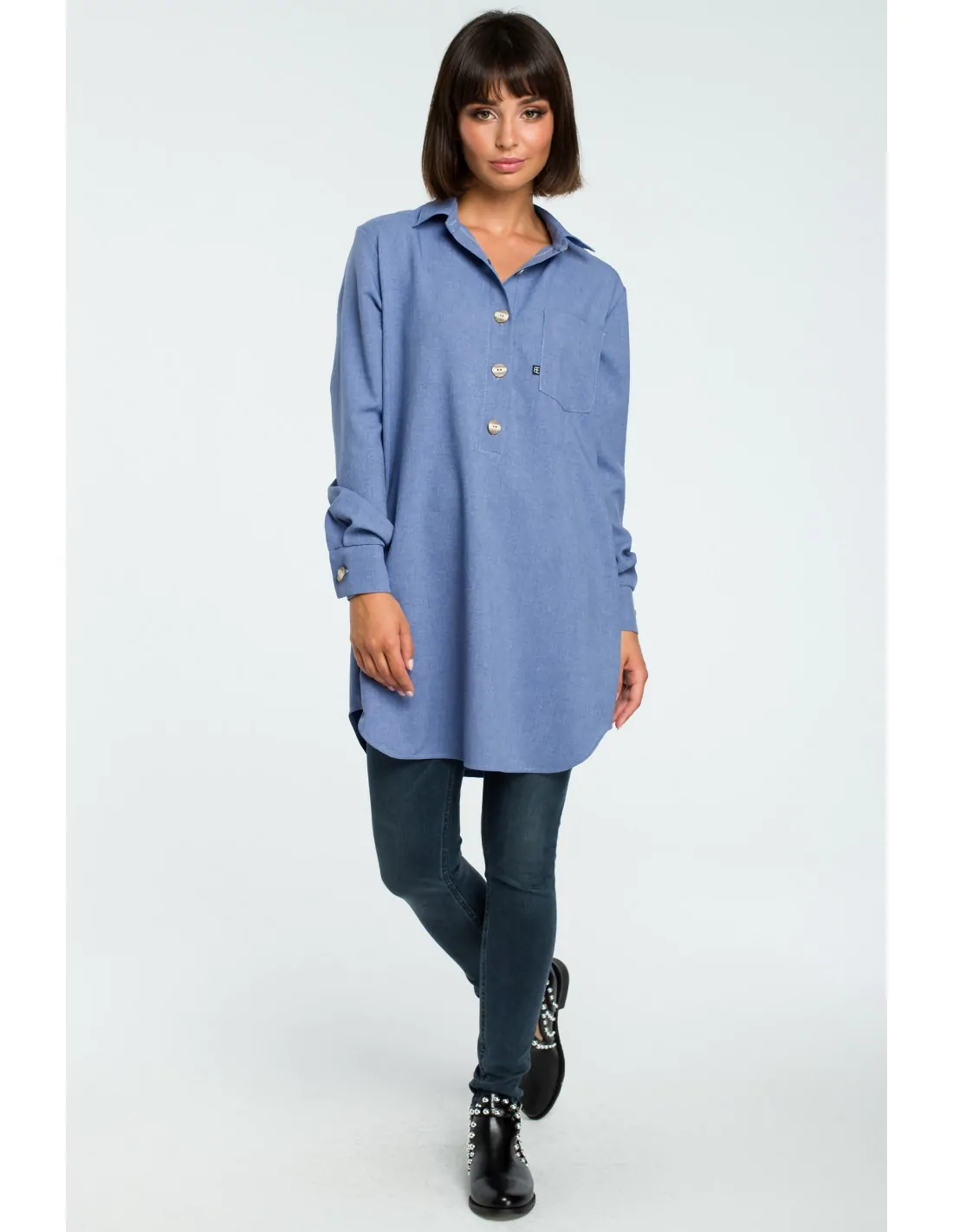 CM3815 Tunika koszulowa z kołnierzykiem - niebieska