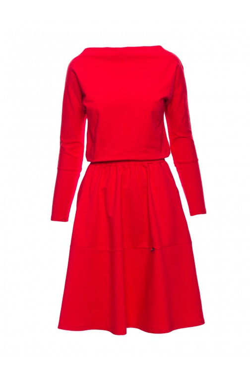 Rozkloszowana sukienka z długim rękawem - czerwona