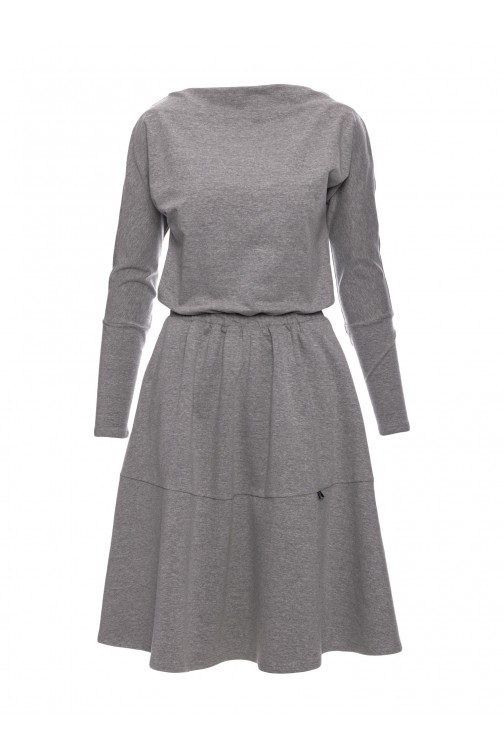 CM3816 Rozkloszowana sukienka z długim rękawem - szara