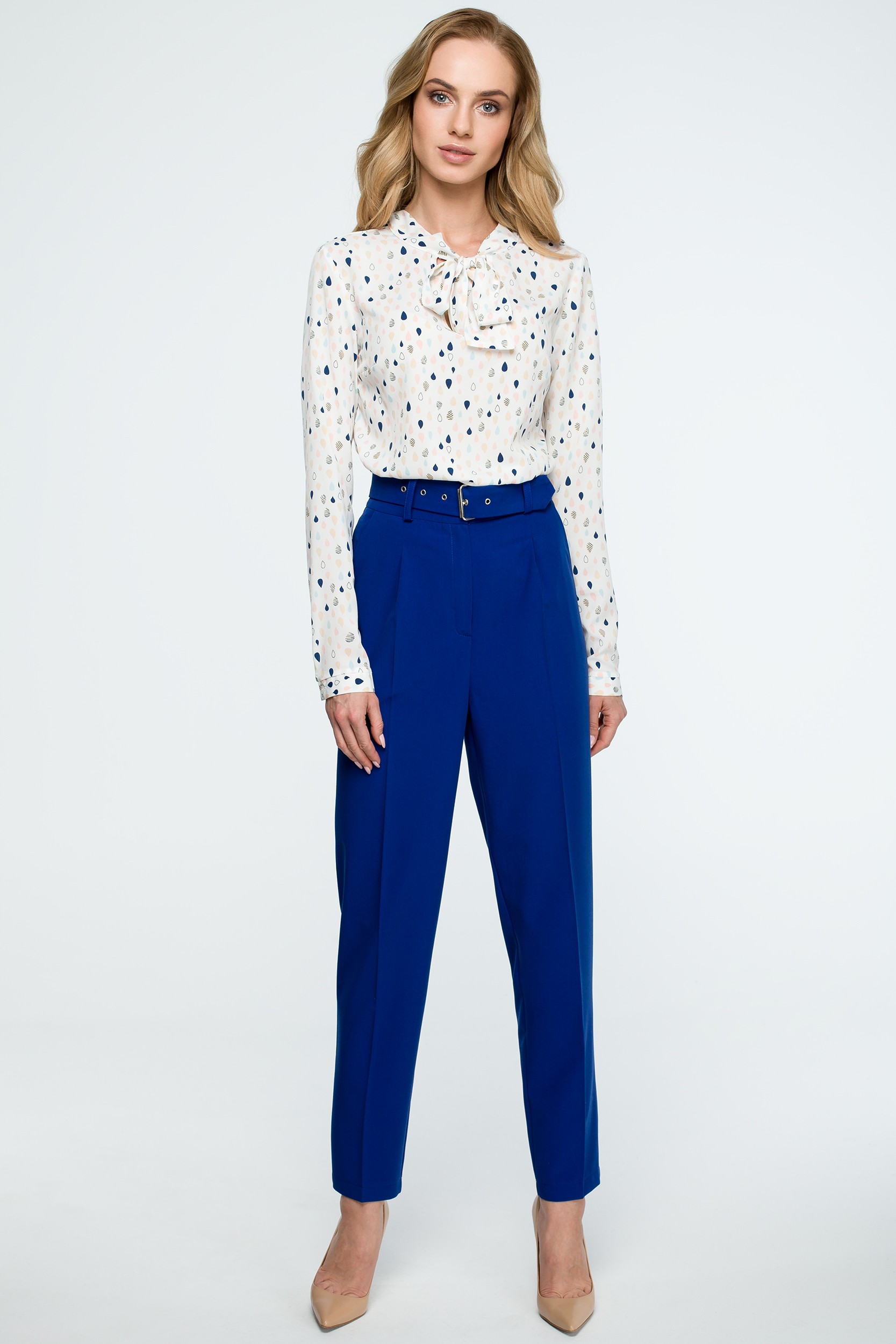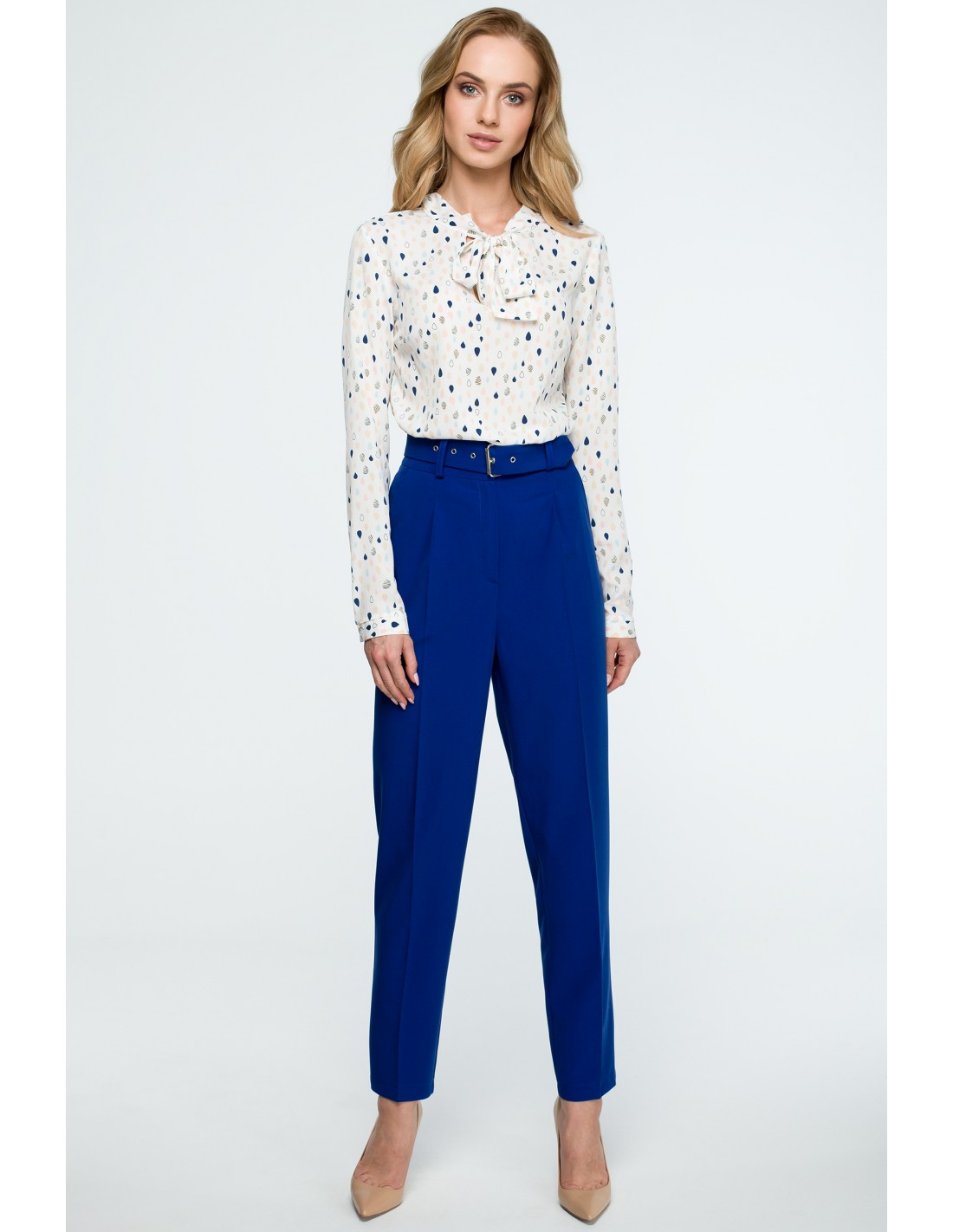 CM3842 Spodnie z wysokim stanem i paskiem - chabrowe