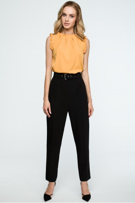 CM3842 Spodnie z wysokim stanem i paskiem - czarne